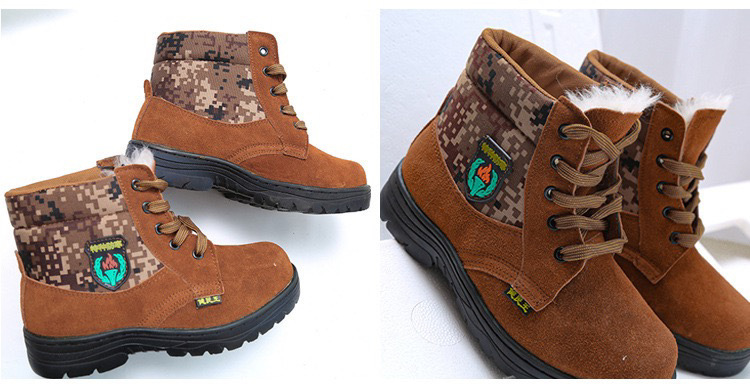 解放靴 メンズ スノーブーツ 滑り止め 通気性 労働保護靴 黄色のゴム靴 ハイカット 迷彩柄 軍事訓練用コットンブーツ 登山用作業靴