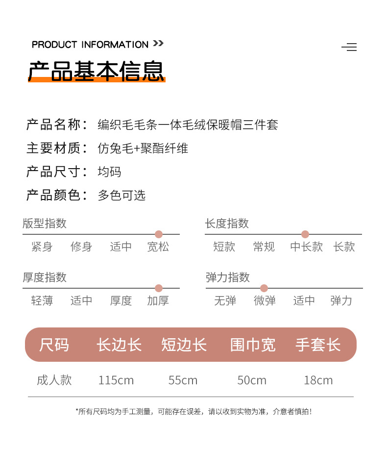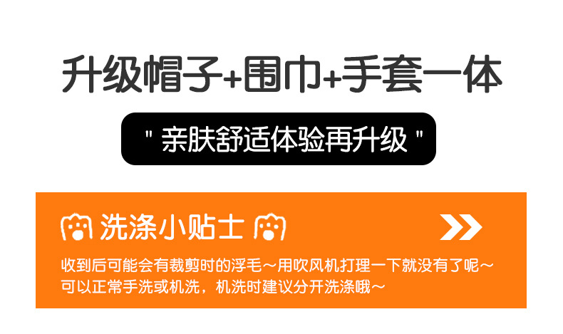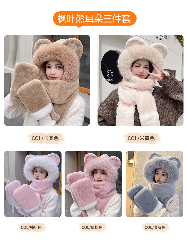 圣诞风萌趣熊耳毛绒三件套帽子围巾手套一体可爱保暖过冬必备