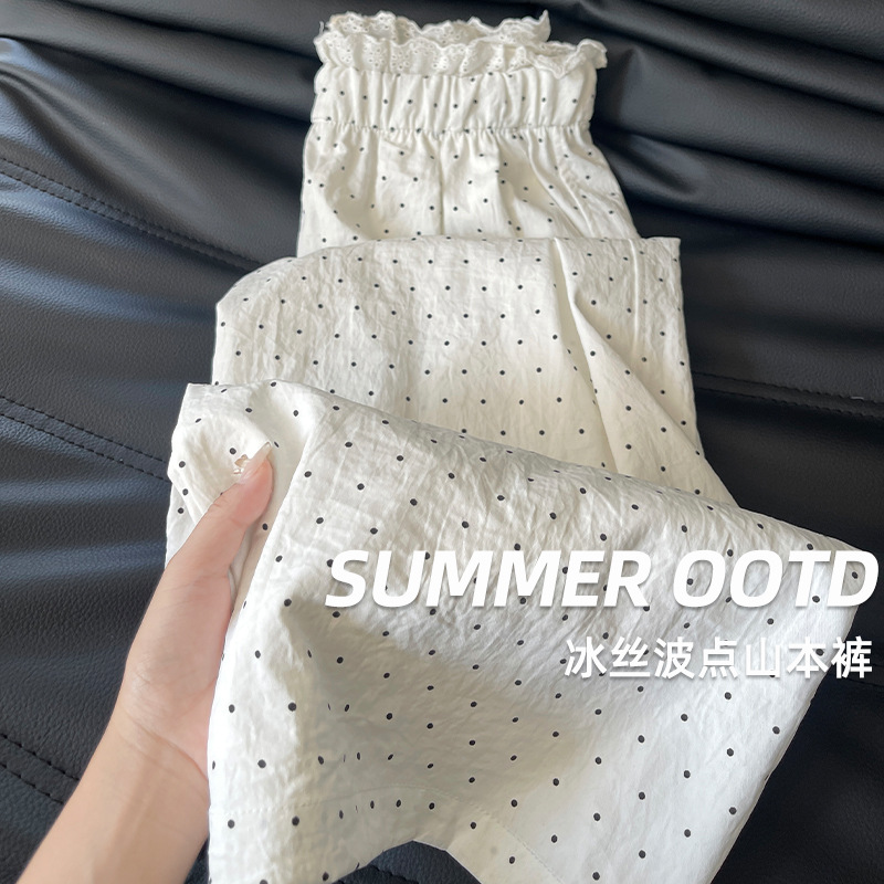 白い小清新で腰の波を緩めてレースの夏2025の新型のつなぎ合わせの設計の怠惰な風の広い足のズボン