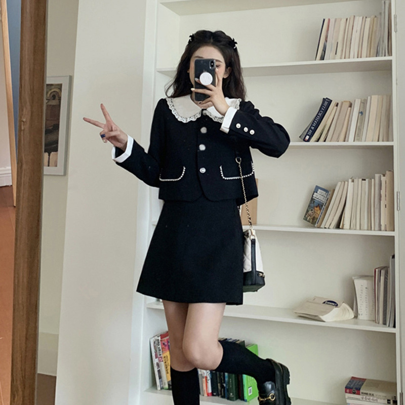 2点セットの気質名媛小香風コート女性2025春日系学院風高腰スカート6631