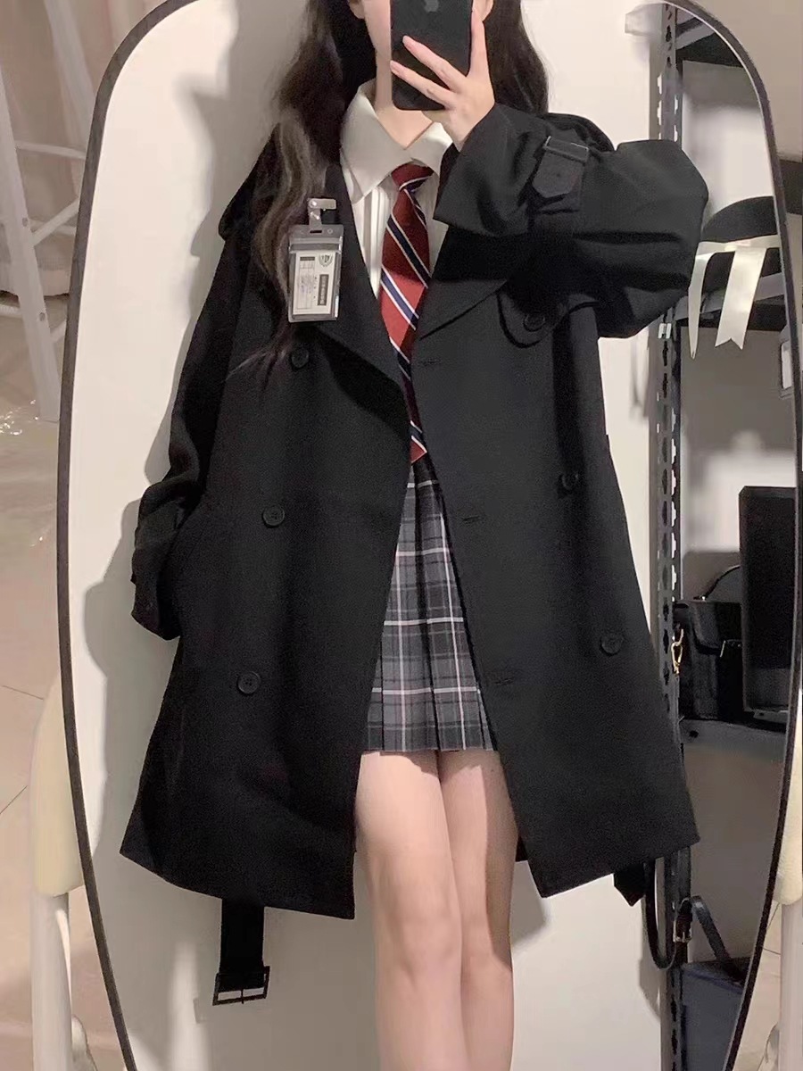 垂感学院风大衣春秋冬季新款大码胖妹妹感英伦休闲风衣外套女