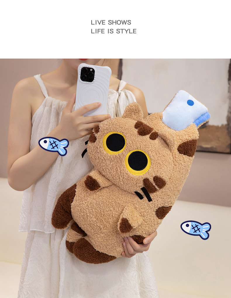卡通晒猫猫抱枕毛绒公仔可爱小猫咪趴趴毛绒玩具玩偶床上靠枕抱枕