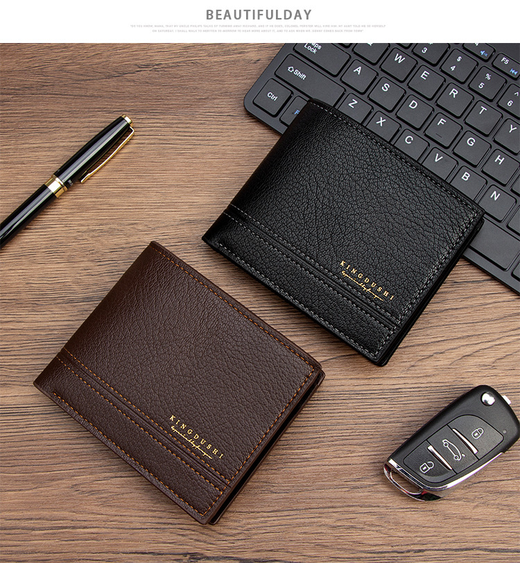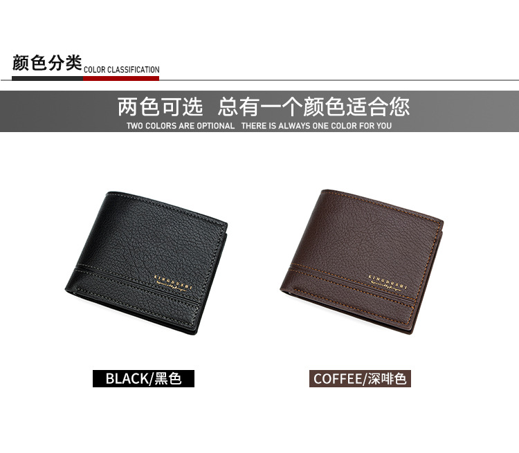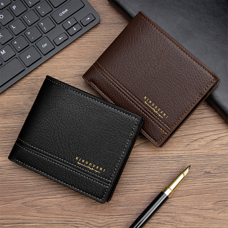 高级感时尚荔枝纹男士钱包短款三折包多卡位大容量合页零钱袋钱夹