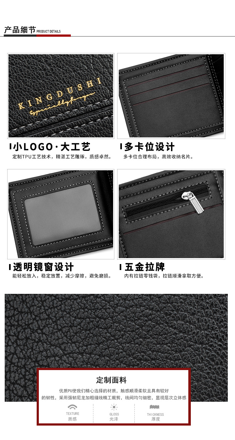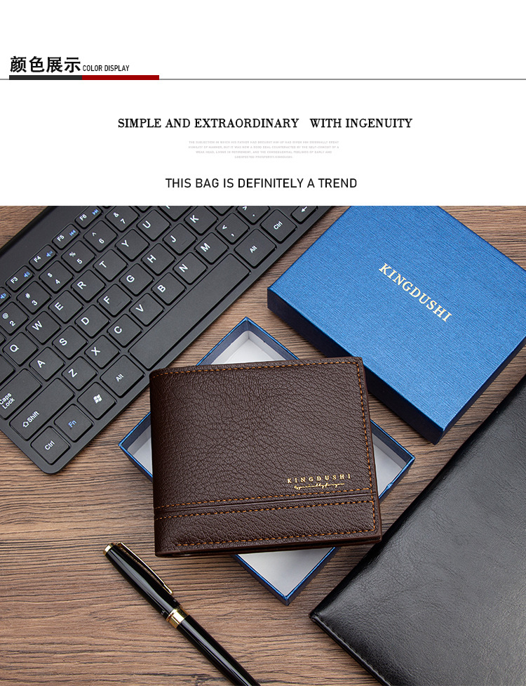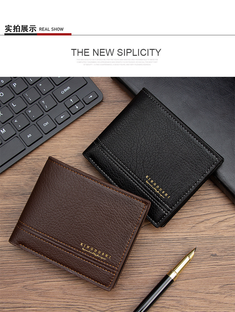高级时尚礼品男士钱包短款三折包多卡位合页零钱袋PU钱夹厂家批发