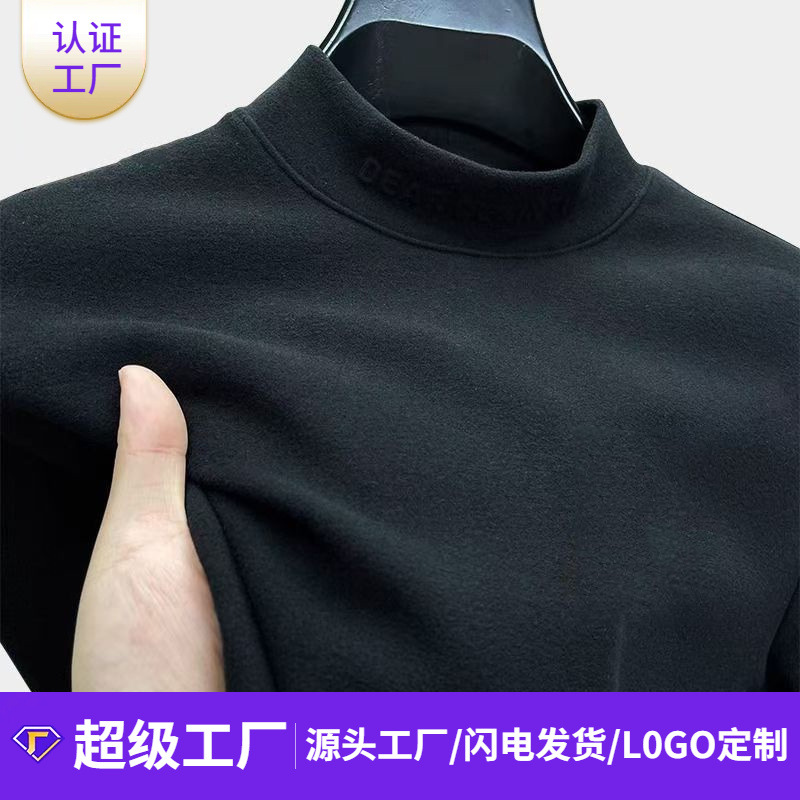 源头厂家男士秋冬季德绒百搭双面绒内搭男长袖上衣保暖中领半高领