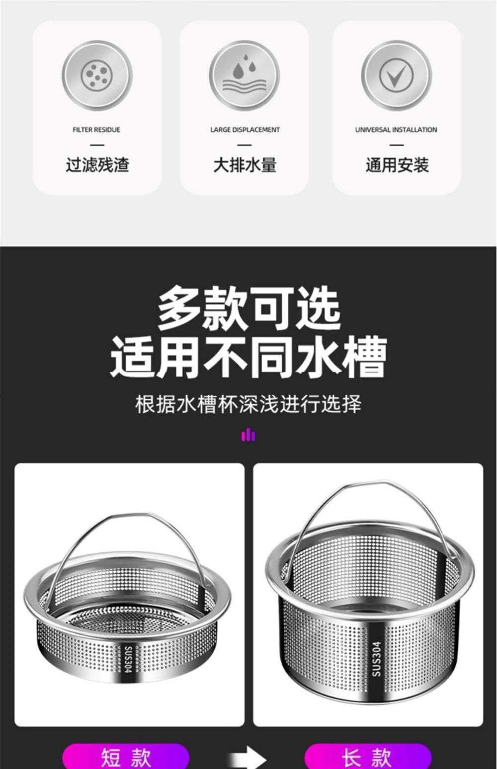 图片 304不锈钢水槽过滤网【短款1只装】,304不锈钢水槽过滤网【短款2只装】,304不锈钢水槽过滤网【长款1只装】,304不锈钢水槽过滤网【长款2只装】,304不锈钢水槽过滤网【长、短款组合装】