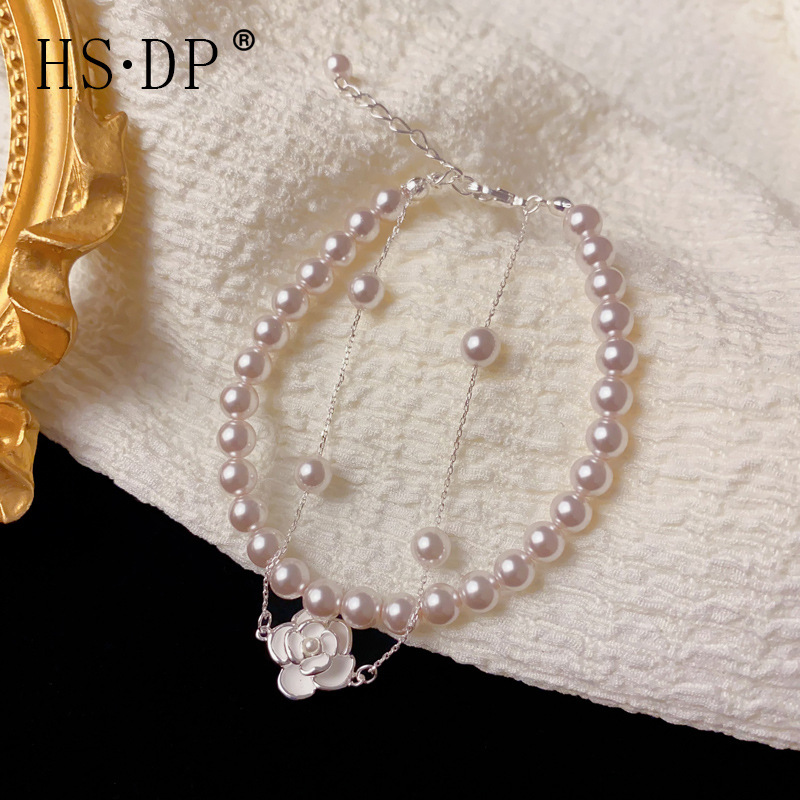 温柔百搭山茶花双层珍珠手链女气质时尚简约超仙可调节手饰批发