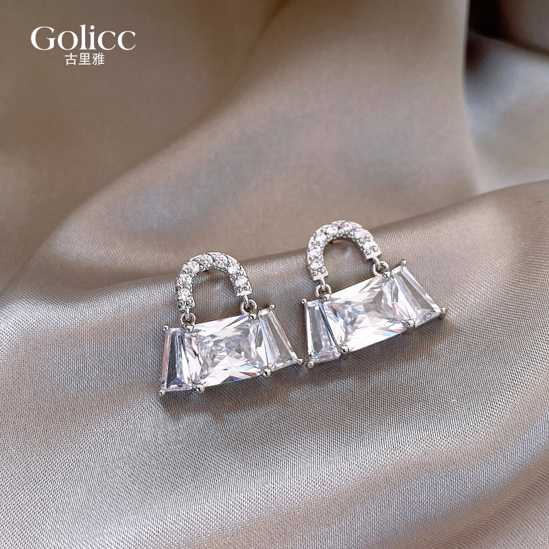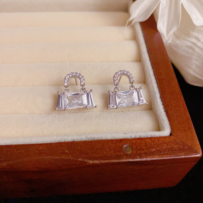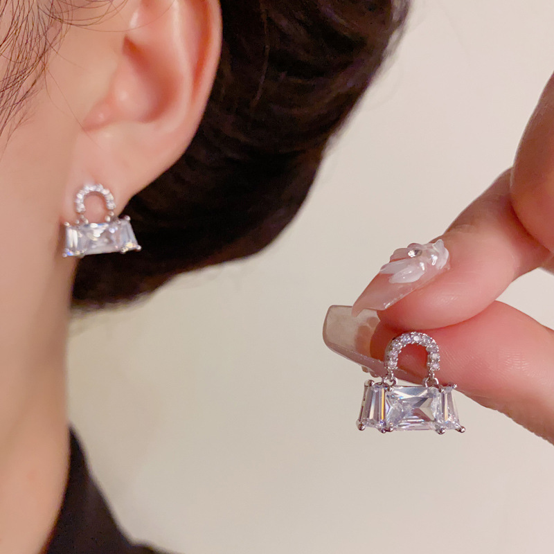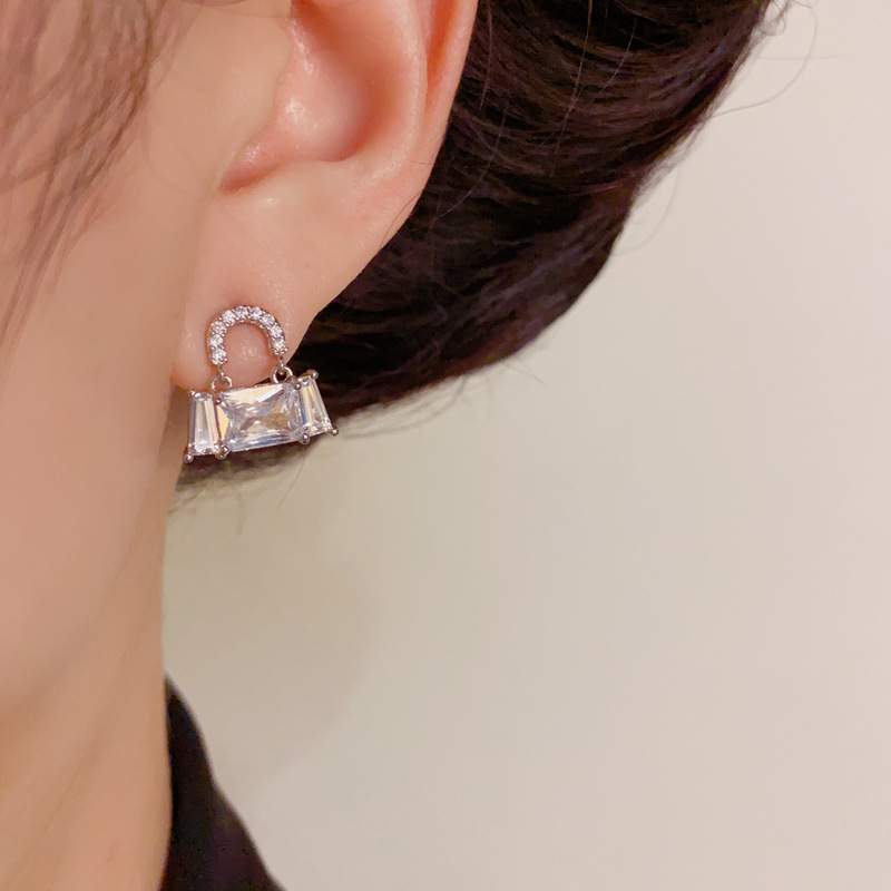 精致时尚百搭超闪镶钻方形包包耳坠女气质简约独特设计感耳扣批发