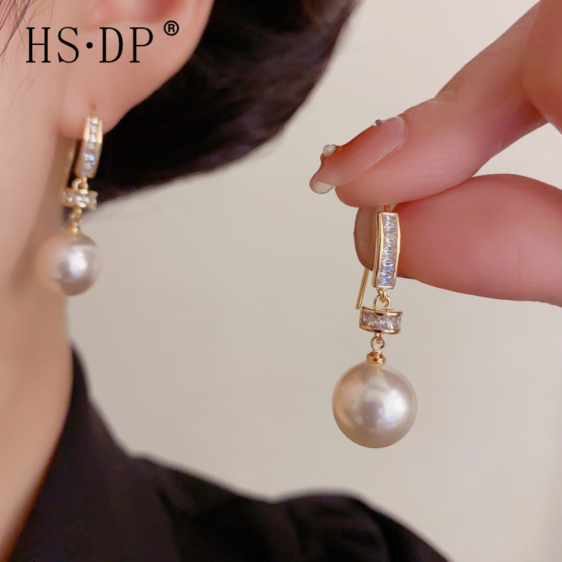 フランス式の香港風の気質の軽くて豪華なシャンパン色の真珠のジルコンのイヤリングの女性のきらめく名媛風の復古の高級感のイヤリング