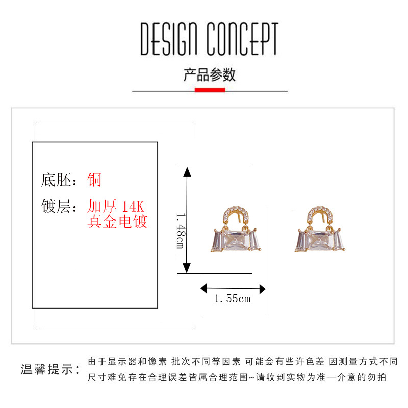 颜色 金色-满钻方形包包耳钉(加厚真金电镀),银色-满钻方形包包耳钉(加厚真金电镀)