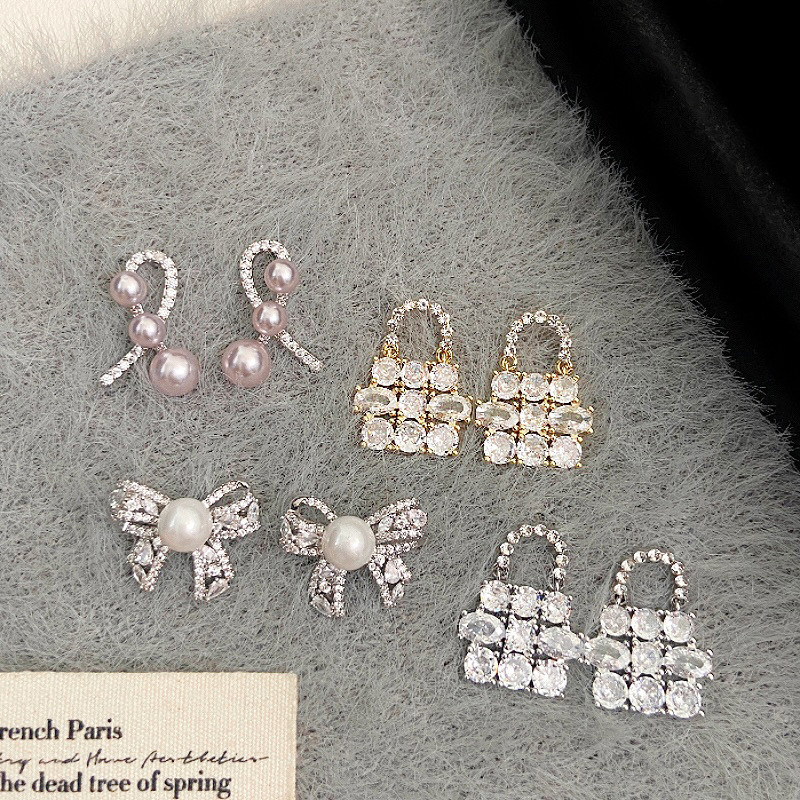 フレンチリボンマンタローズ石家ビーズフルダイヤモンドバッグイヤリング女性の絶妙な軽い高級デザインイヤリング