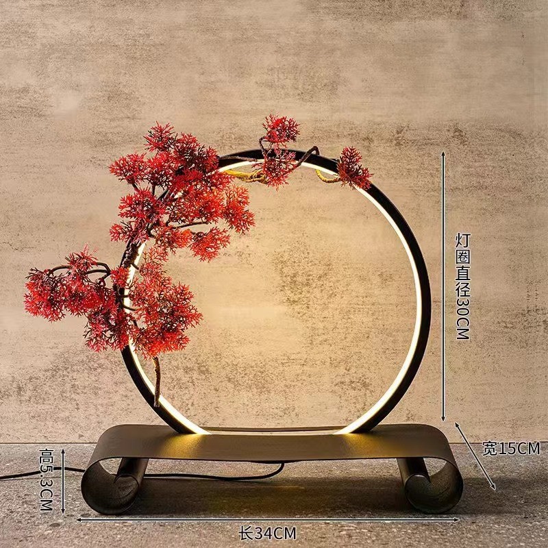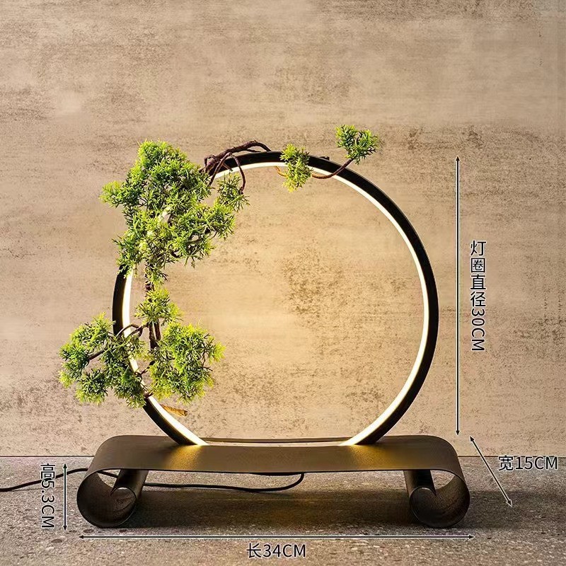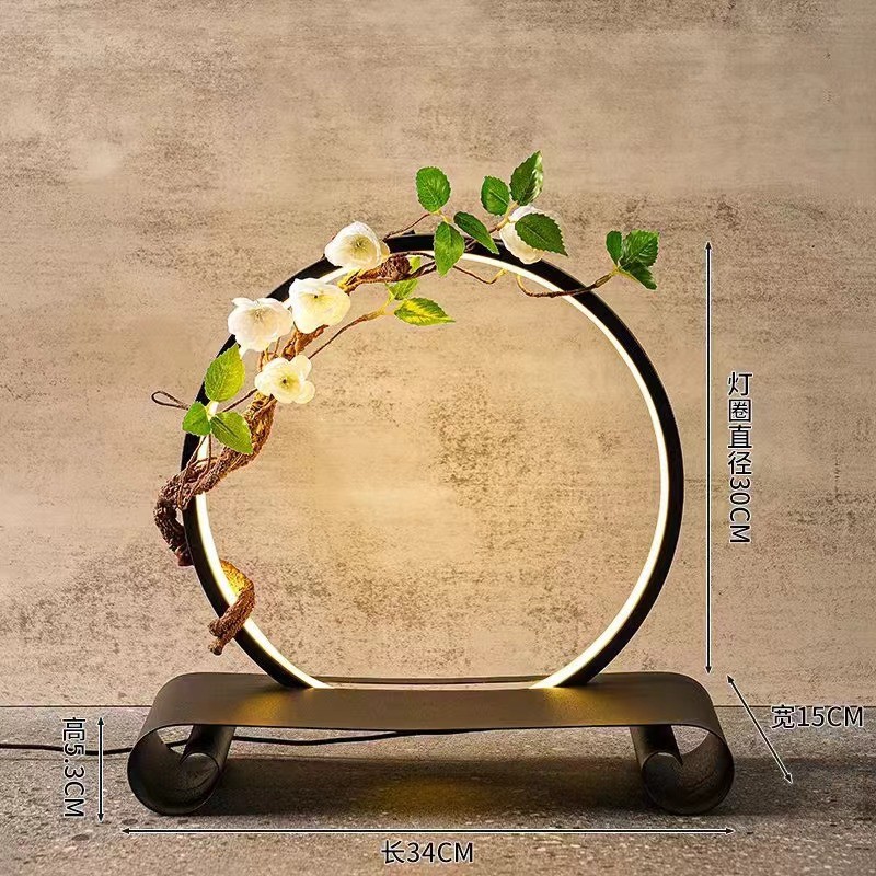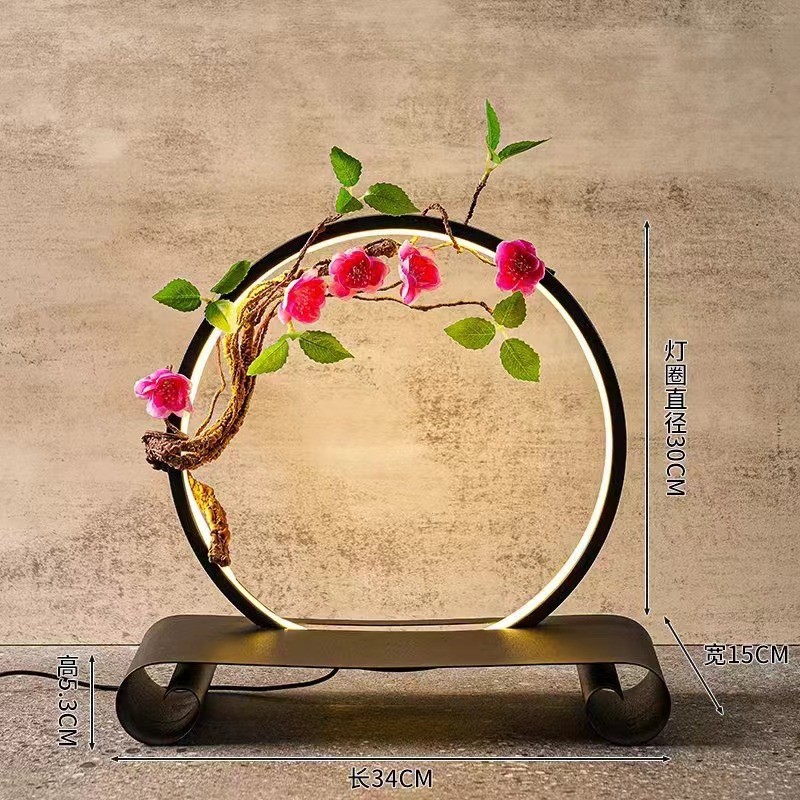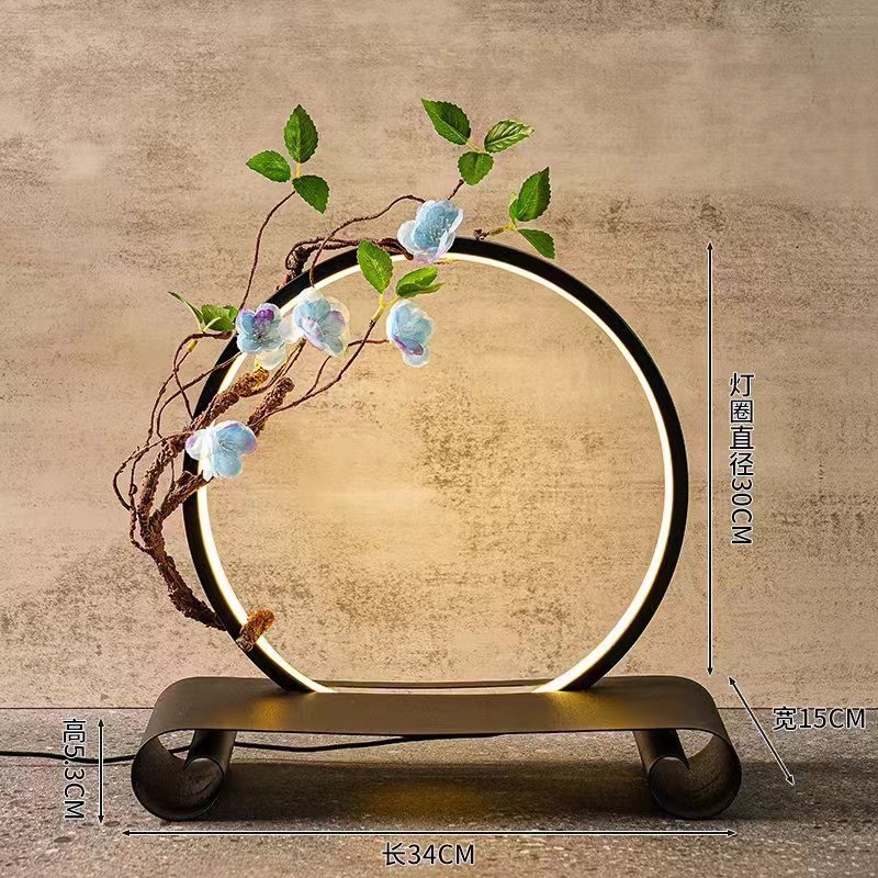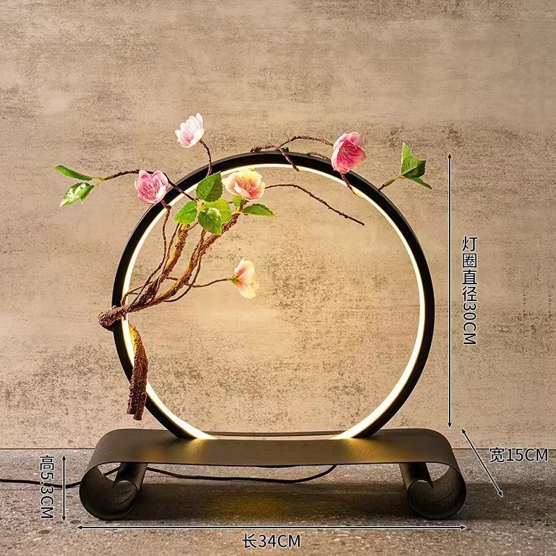 led灯圈摆件中式禅意创意客厅玄关办公开业送礼桌面家居装饰摆件