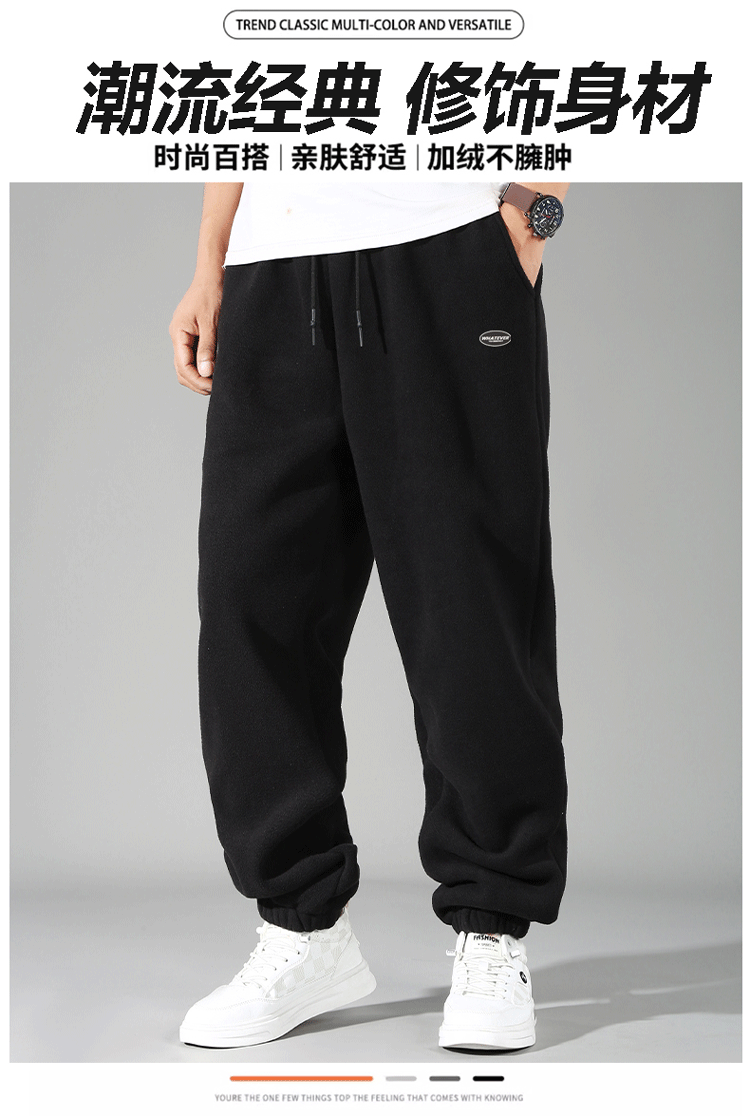特大码双面摇粒绒卫裤男300斤秋冬季宽松加肥加大胖子休闲运动裤