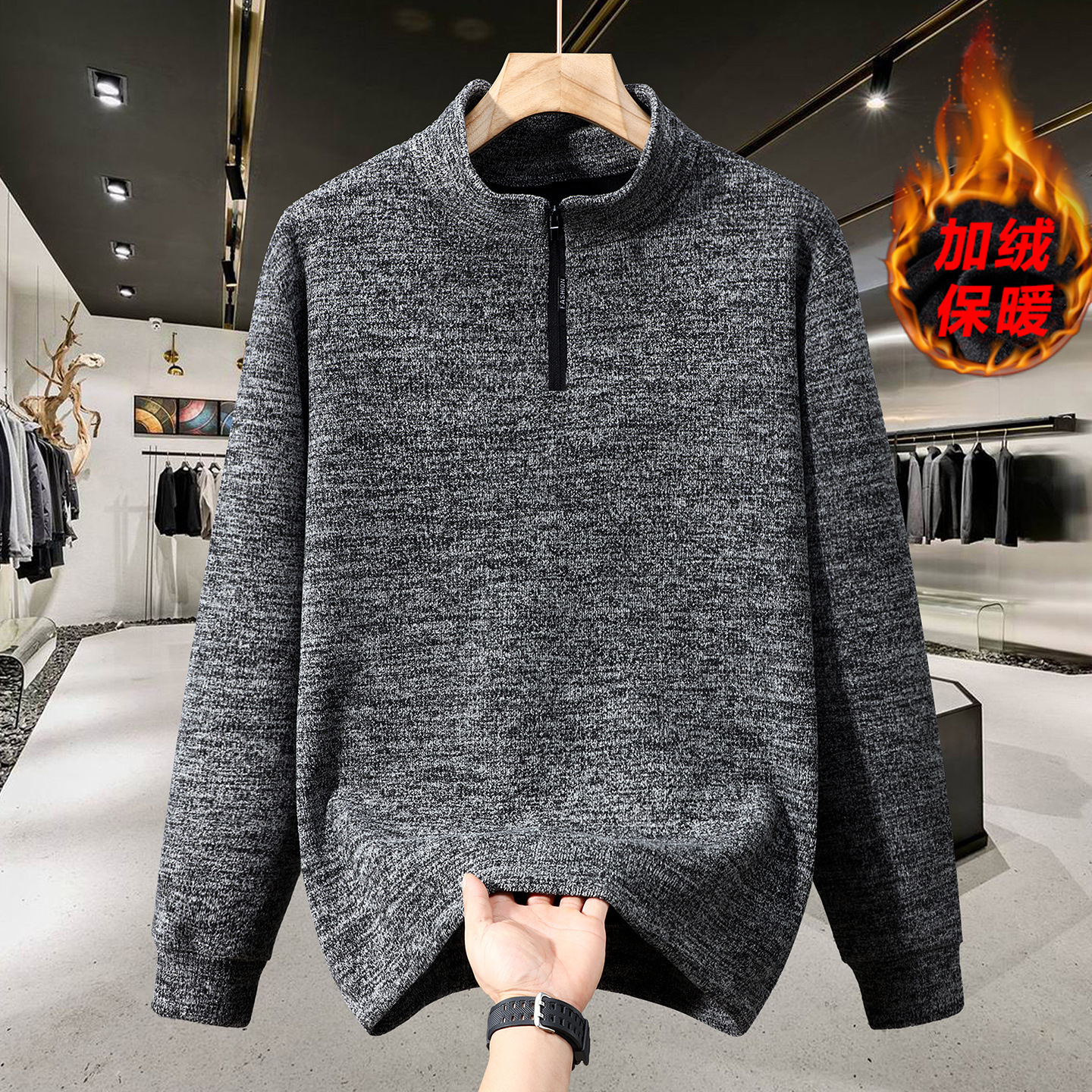 大码拉链卫衣男款秋冬季加绒加厚长袖打底衫胖子潮流宽松休闲上衣
