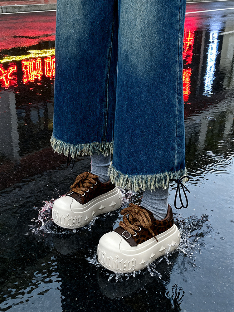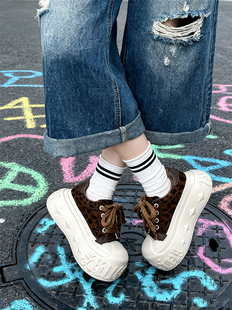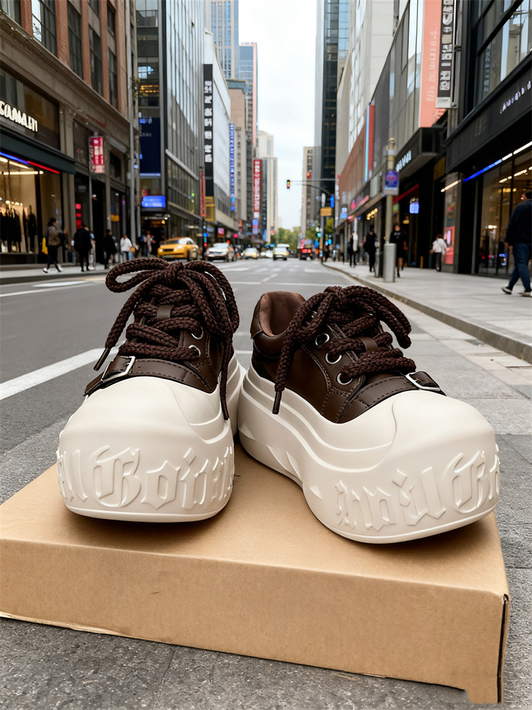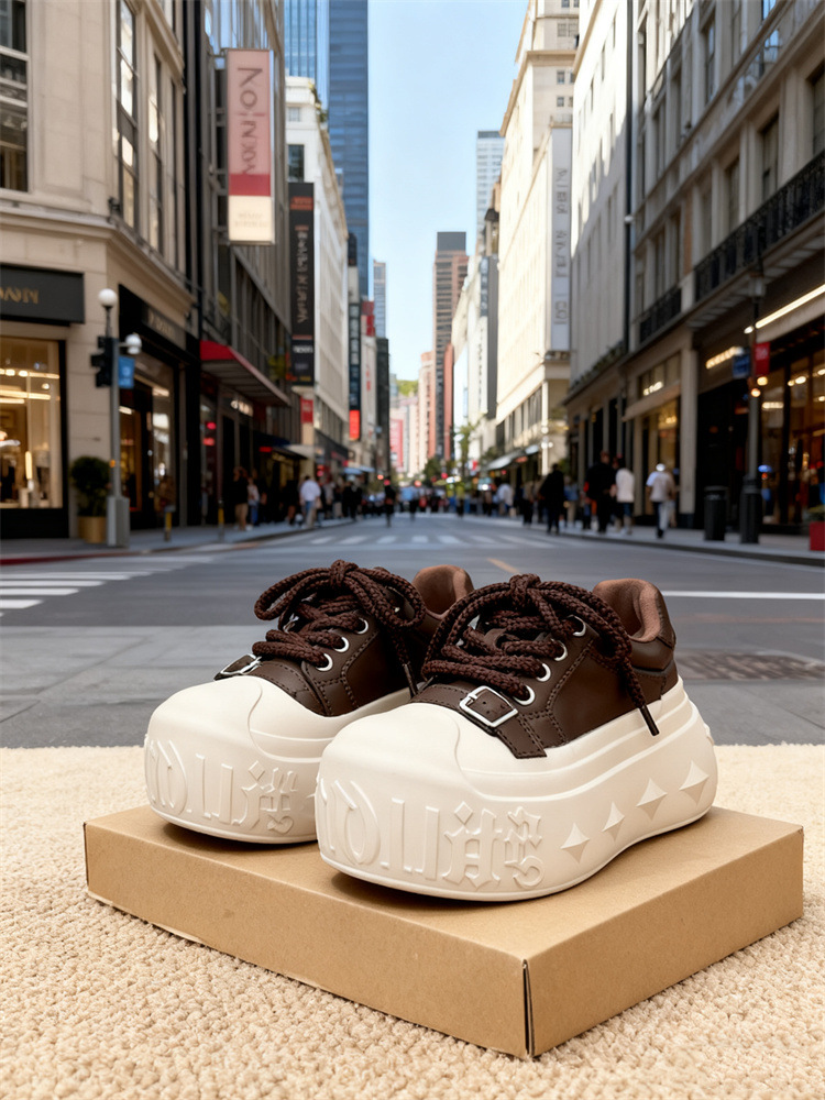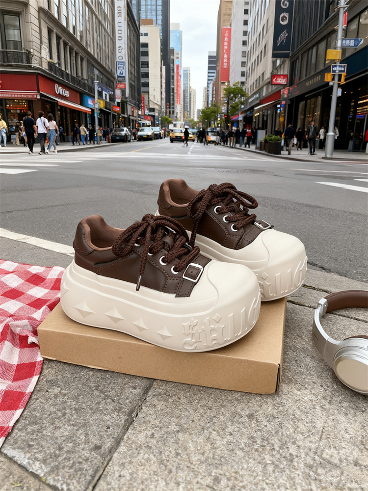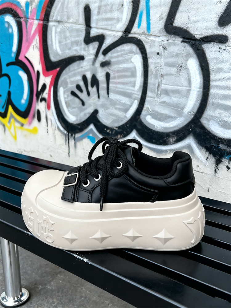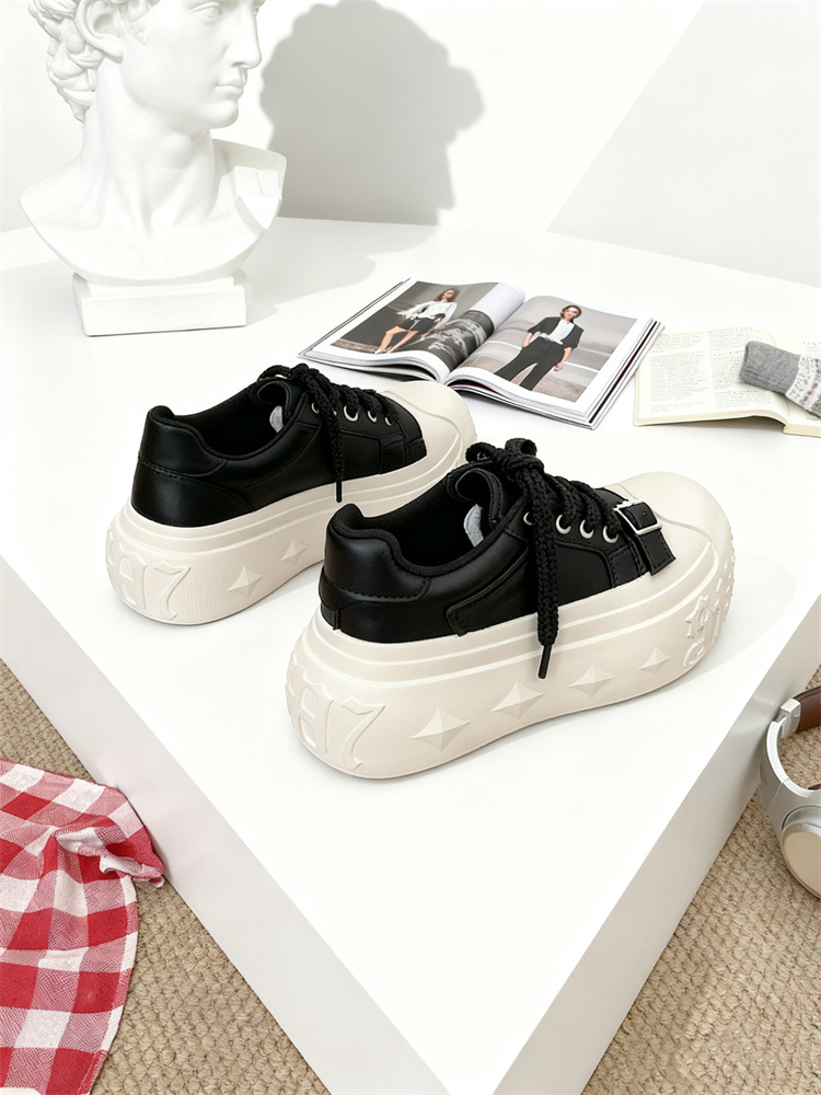 欧货大头面包鞋女款2025年新款厚底松糕鞋百搭小个子增高休闲板鞋