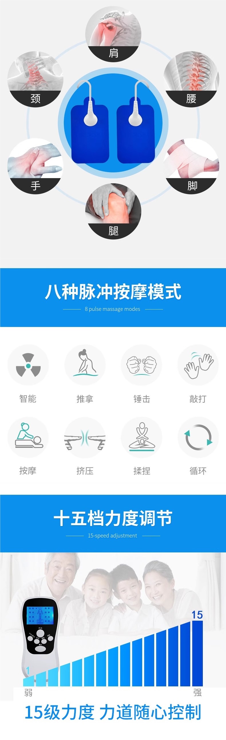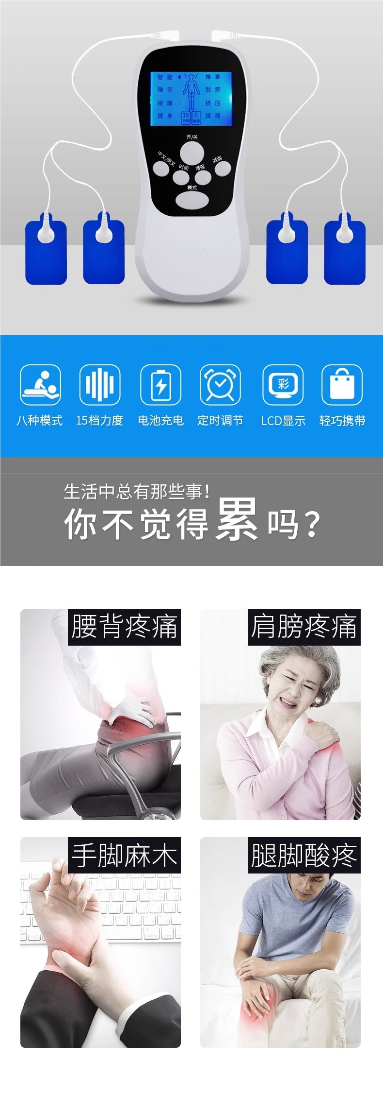针灸电疗仪家用理疗脉冲按摩器贴颈椎腰部背部多功能电疗经络疏通