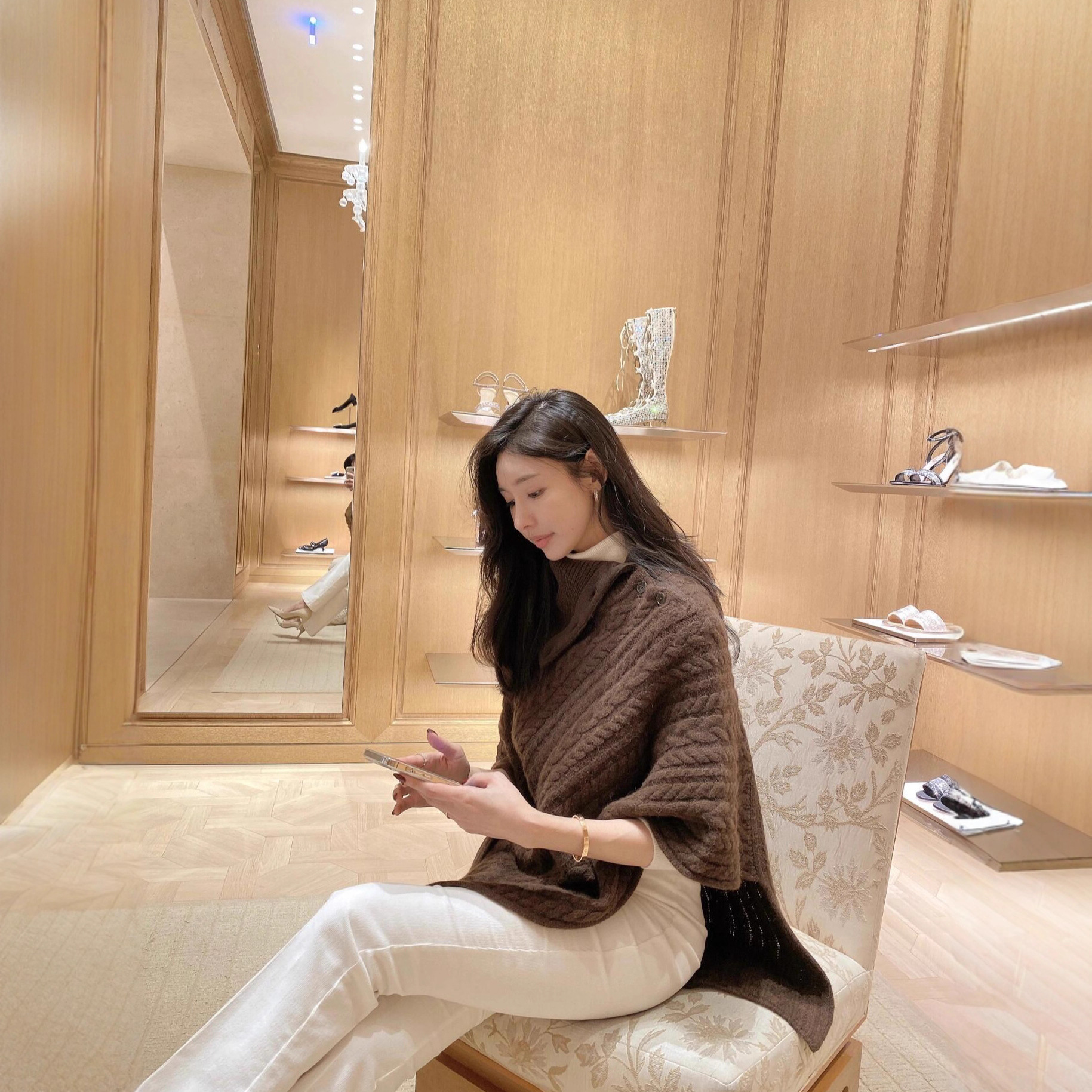 25秋冬韩系百搭不规则麻花高领宽松斗篷毛衣披肩上衣针织外套女