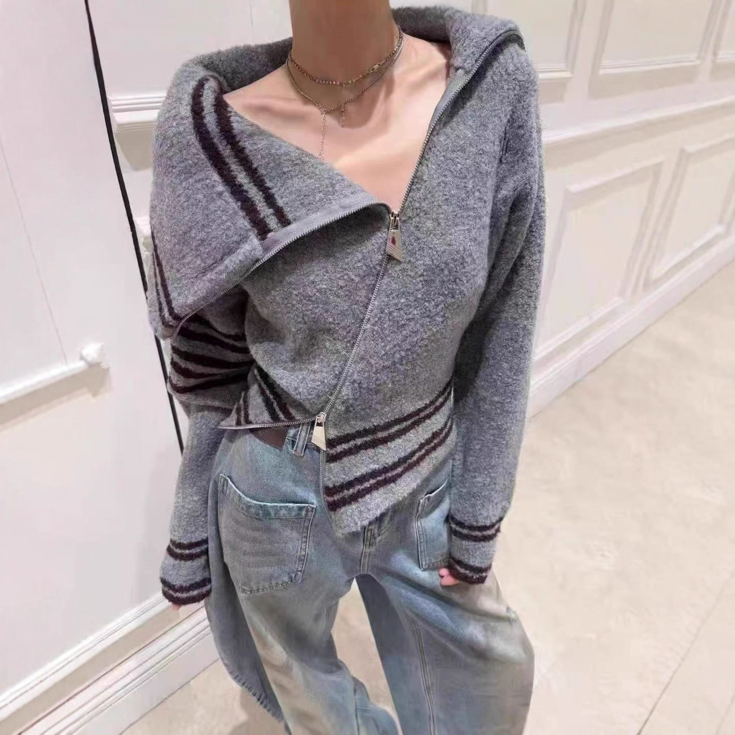 THE @TTIC* 2025秋冬新款设计师款小众复古撞色大翻领羊毛毛衣针