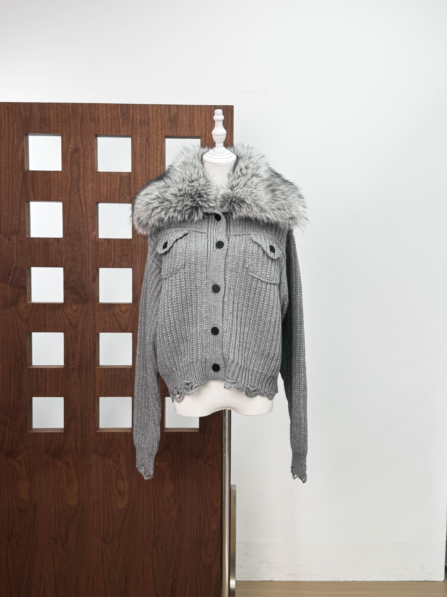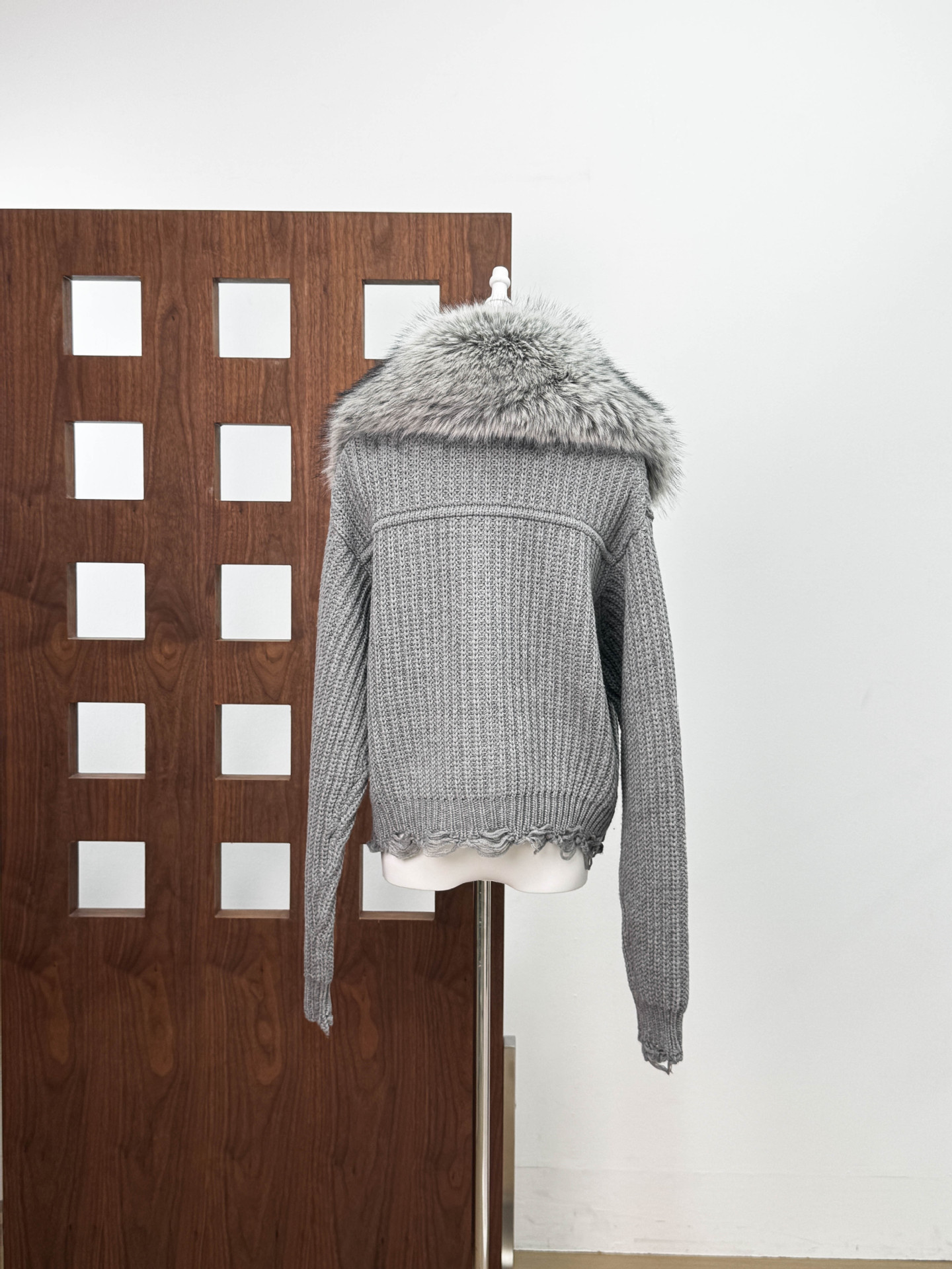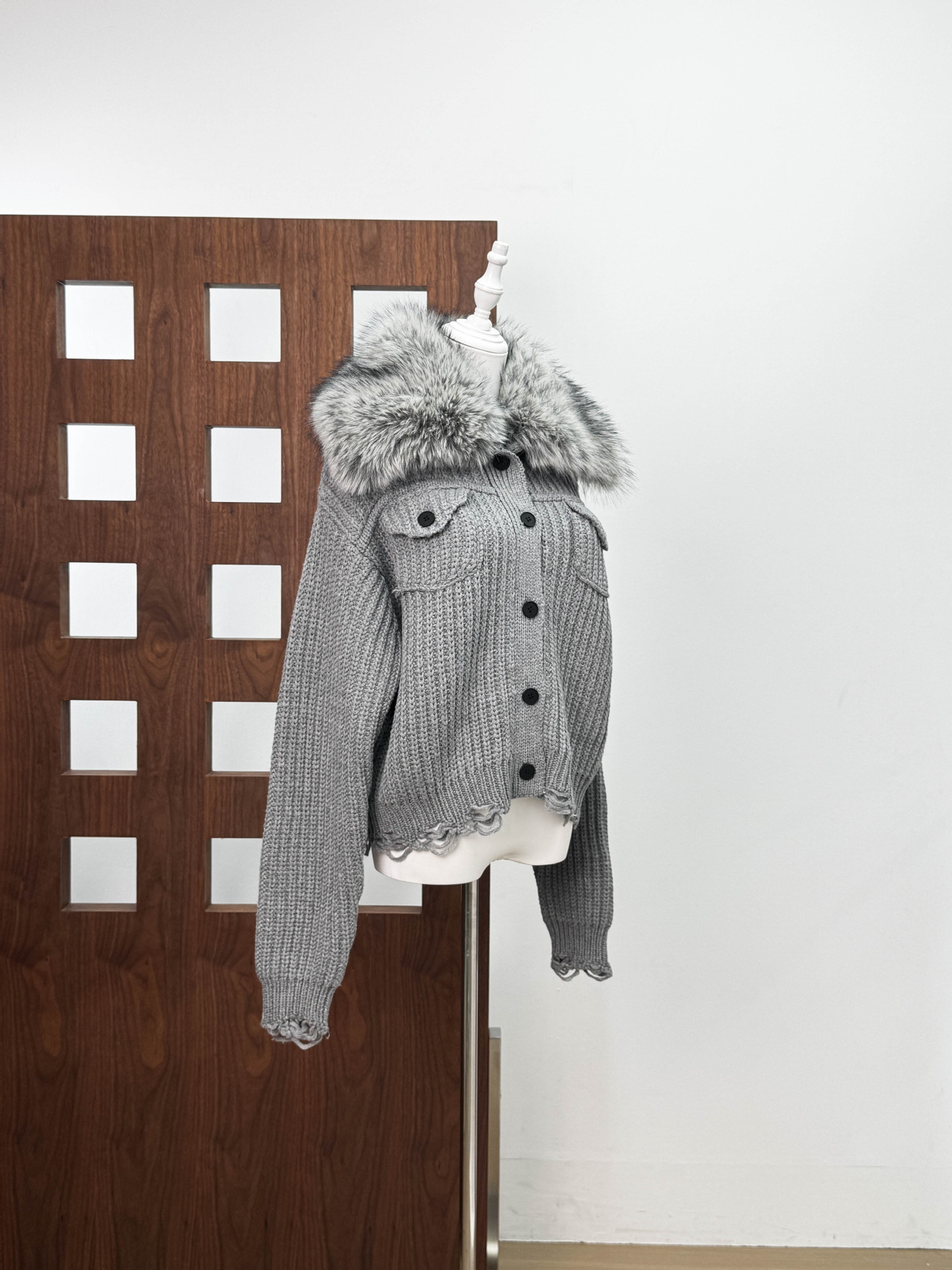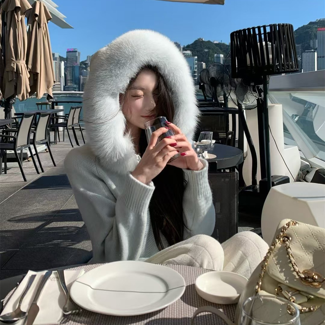 25aw 新款钓系小白花超大100狐狸毛秋冬保暖拉链开衫毛衣外套女款