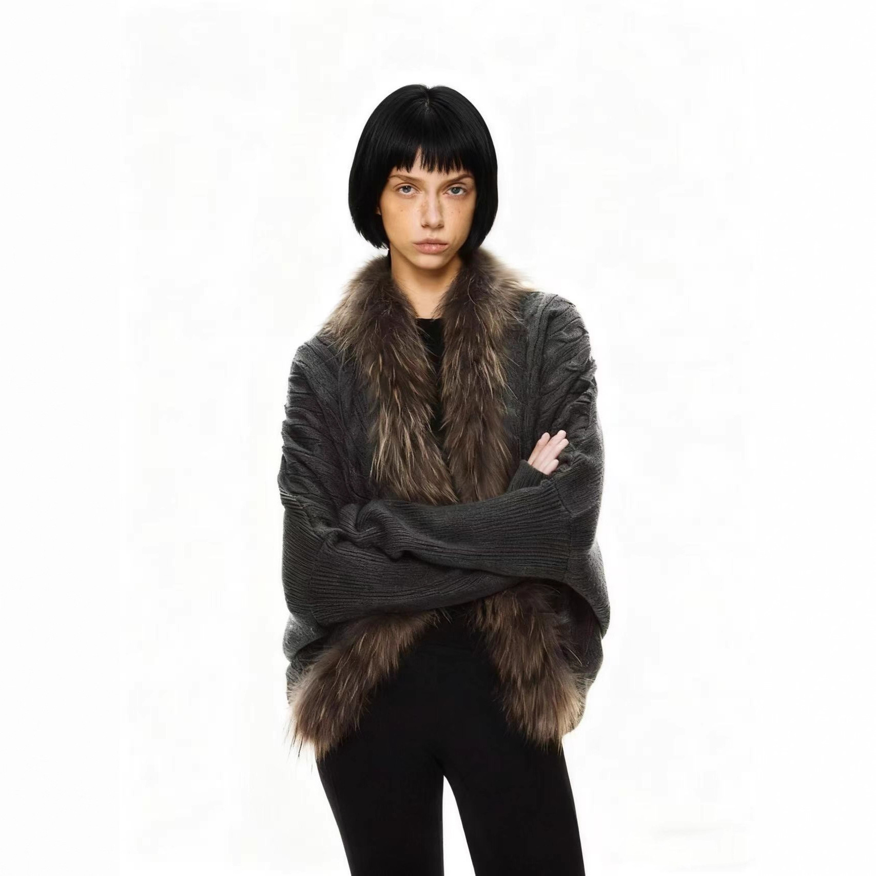 25aw毛领蝙蝠袖毛呢外套名媛气质高级2025秋冬新款设计感开衫