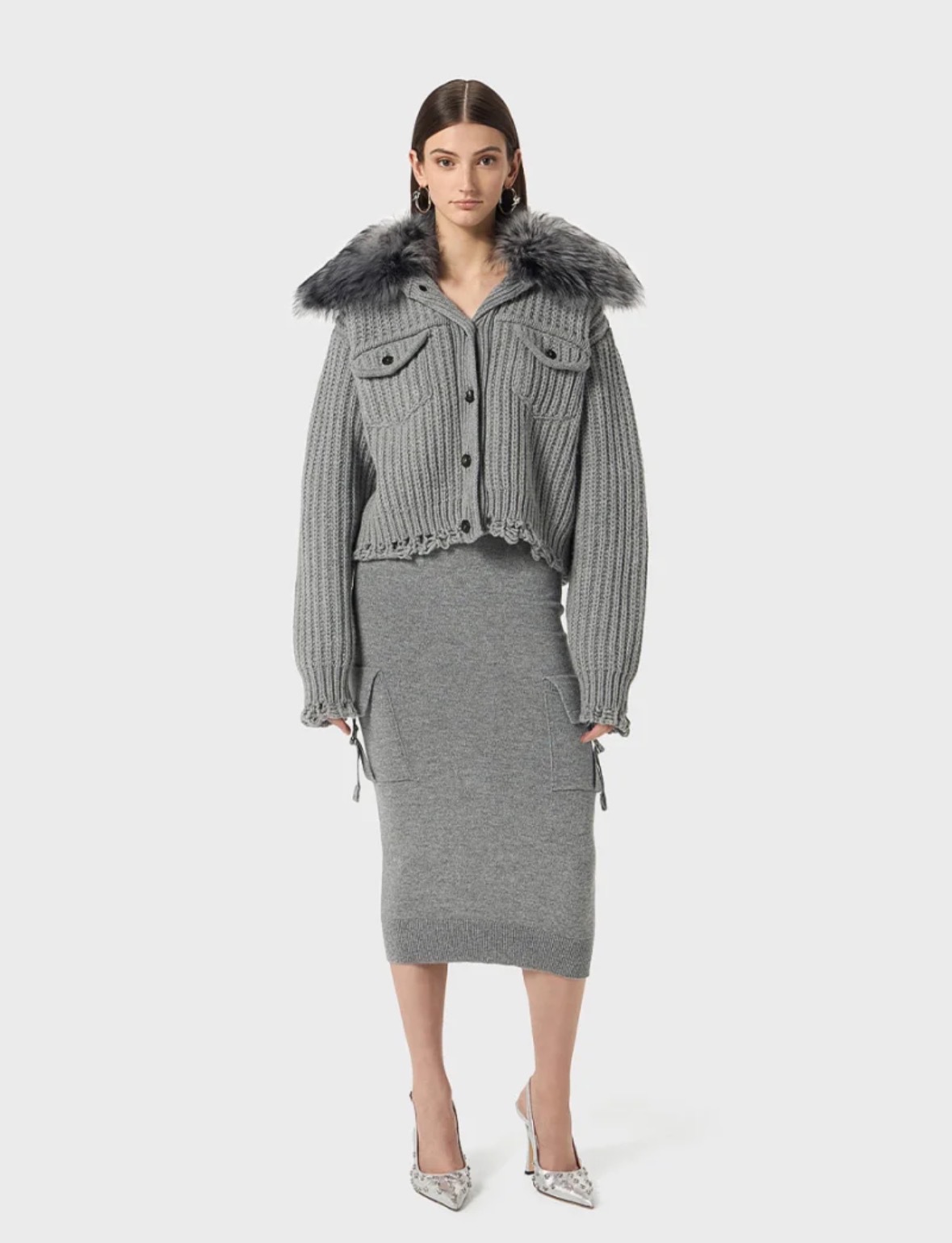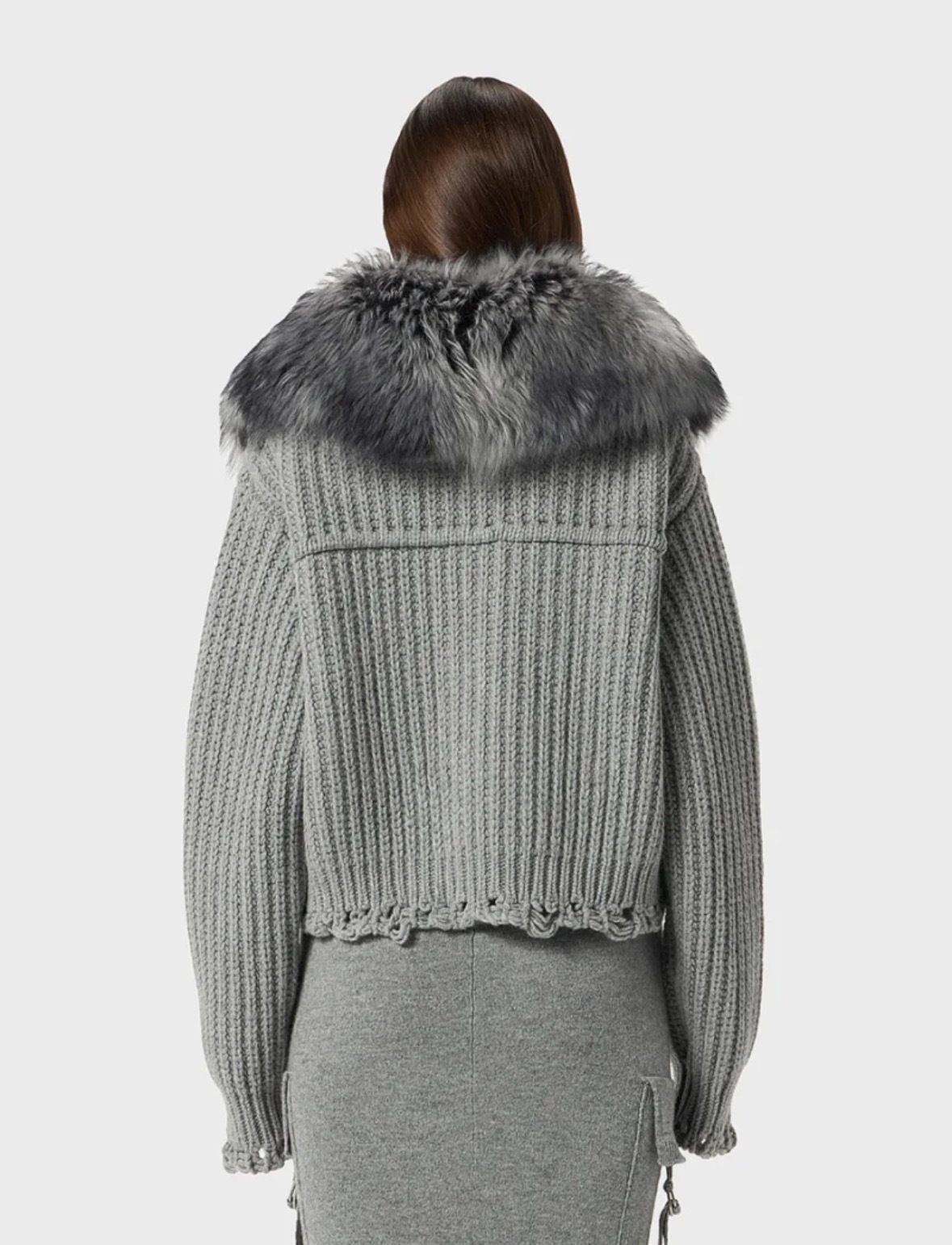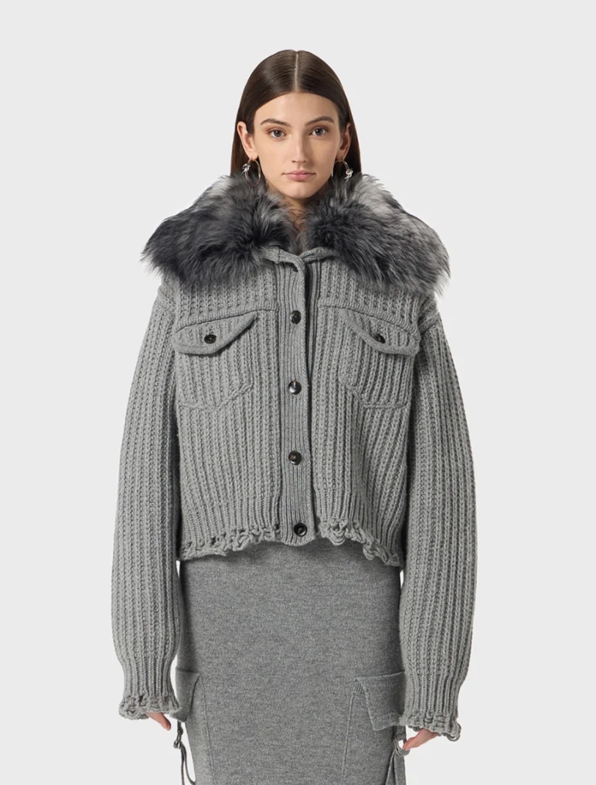 正确版) Blum@rin*深秋重磅羊毛大毛领加厚可拆卸螺纹针织外套