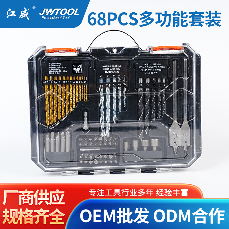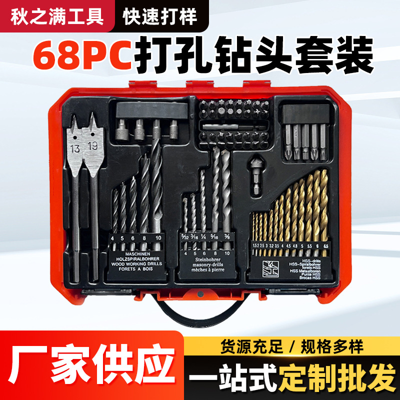 跨境专供68pcs组套100pcs钻头套装麻花钻建工钻木工钻扁钻开孔器