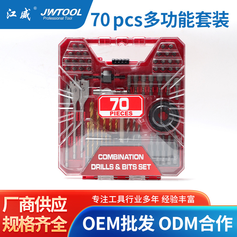 跨境爆款70pcs钻头套装麻花钻木工钻扁钻多功能钻头批头工具组套