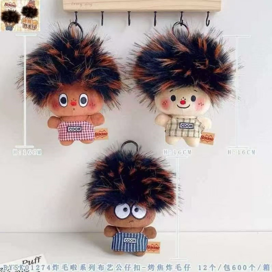 原创丑萌搞怪烤焦炸毛仔挂件汽车钥匙扣卡通可爱毛绒公仔书包饰品