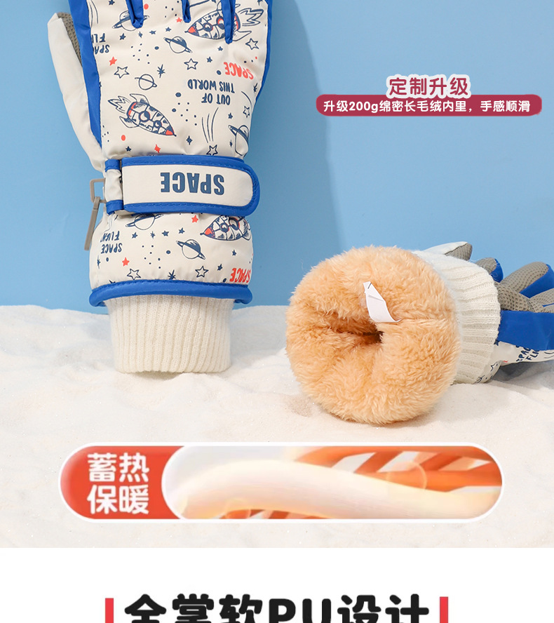 新款滑雪手套冬天防泼水加绒保暖加厚棉玩雪骑车男孩女儿童小学生