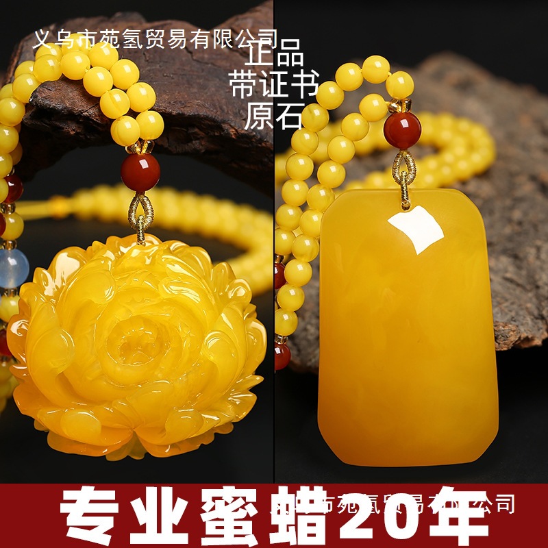 附证书天然老蜜蜡龙凤牌吊坠女项链无事牌琥珀牡丹貔貅毛衣链情侣