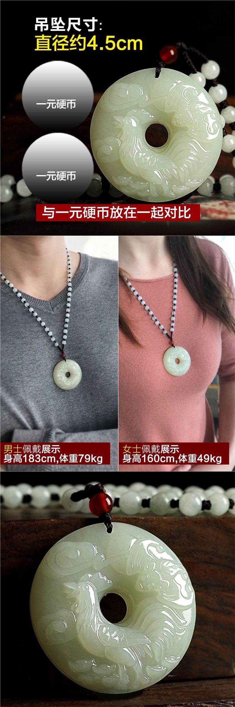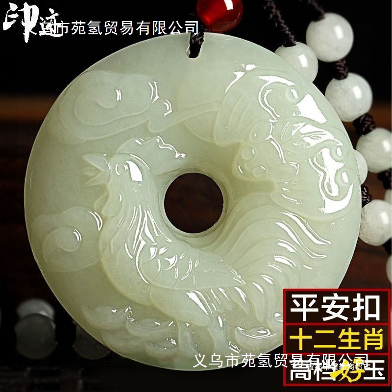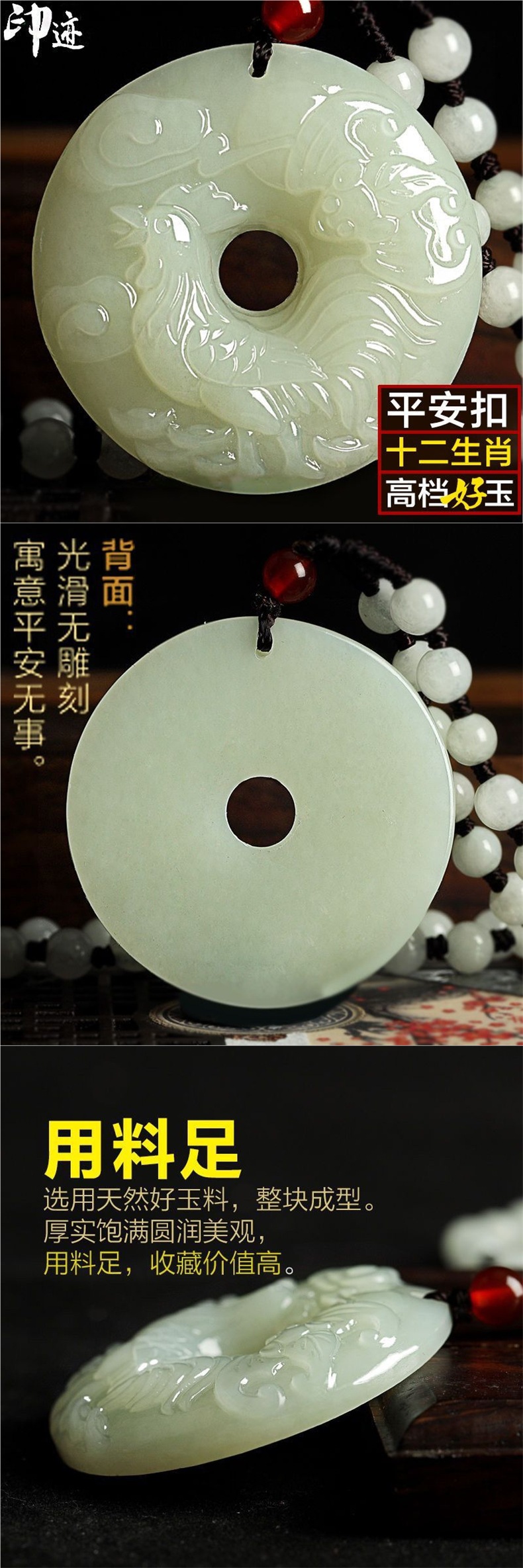 和田玉平安バックル十二生肖ペンダント男女型天然玉ネックレス相円形本命年プレゼント
