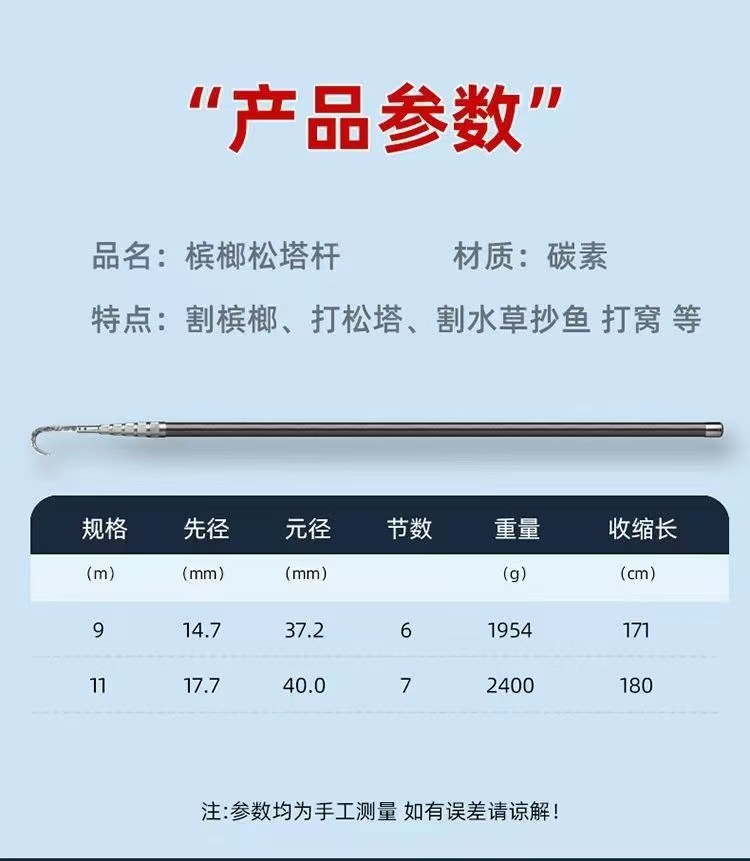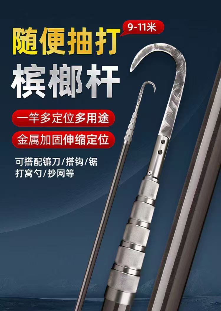 松塔竿槟榔单杆自由定位超硬加厚打核桃6米—12多功能伸缩杆