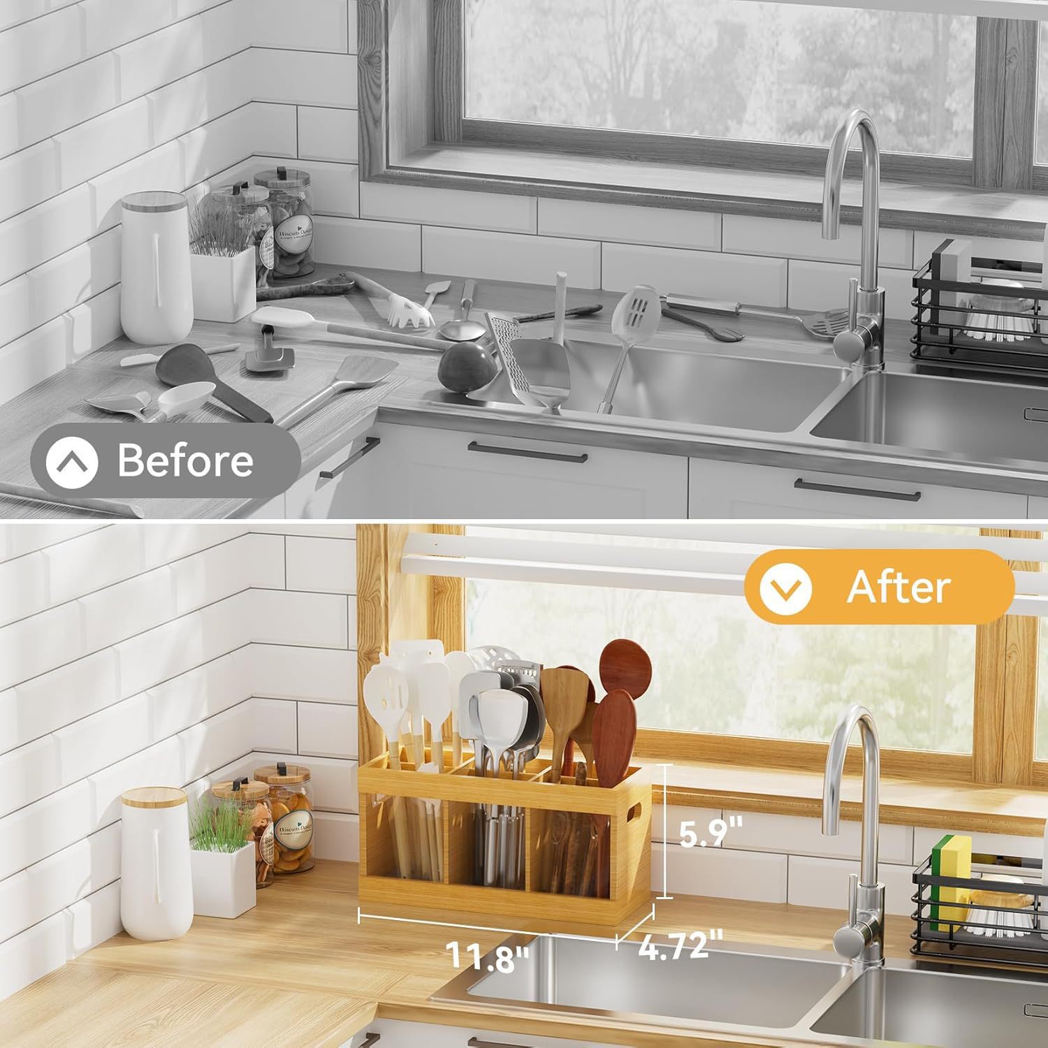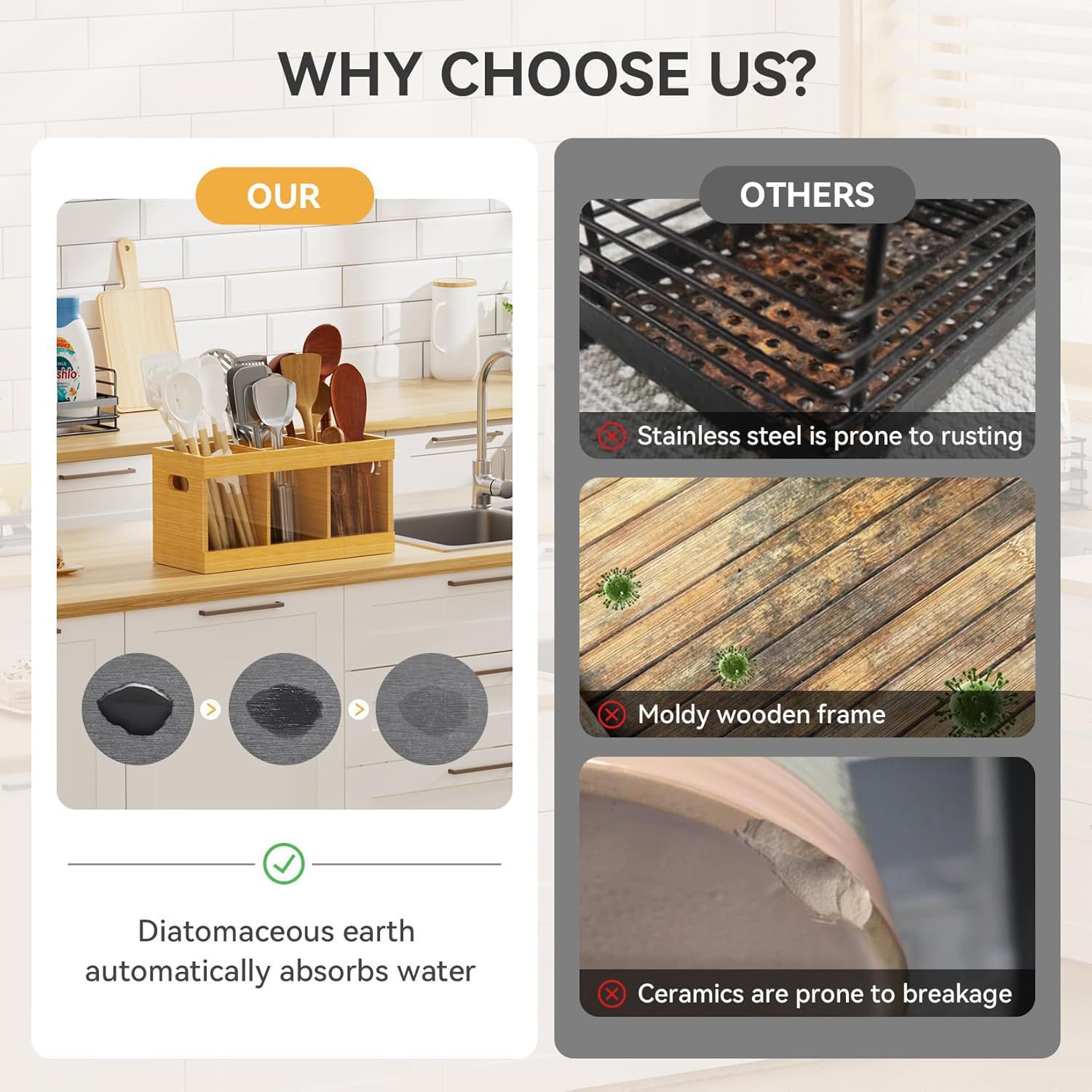 现货新品厨具收纳盒多格筷子沥水架壁挂式木质厨房分格餐具置物架