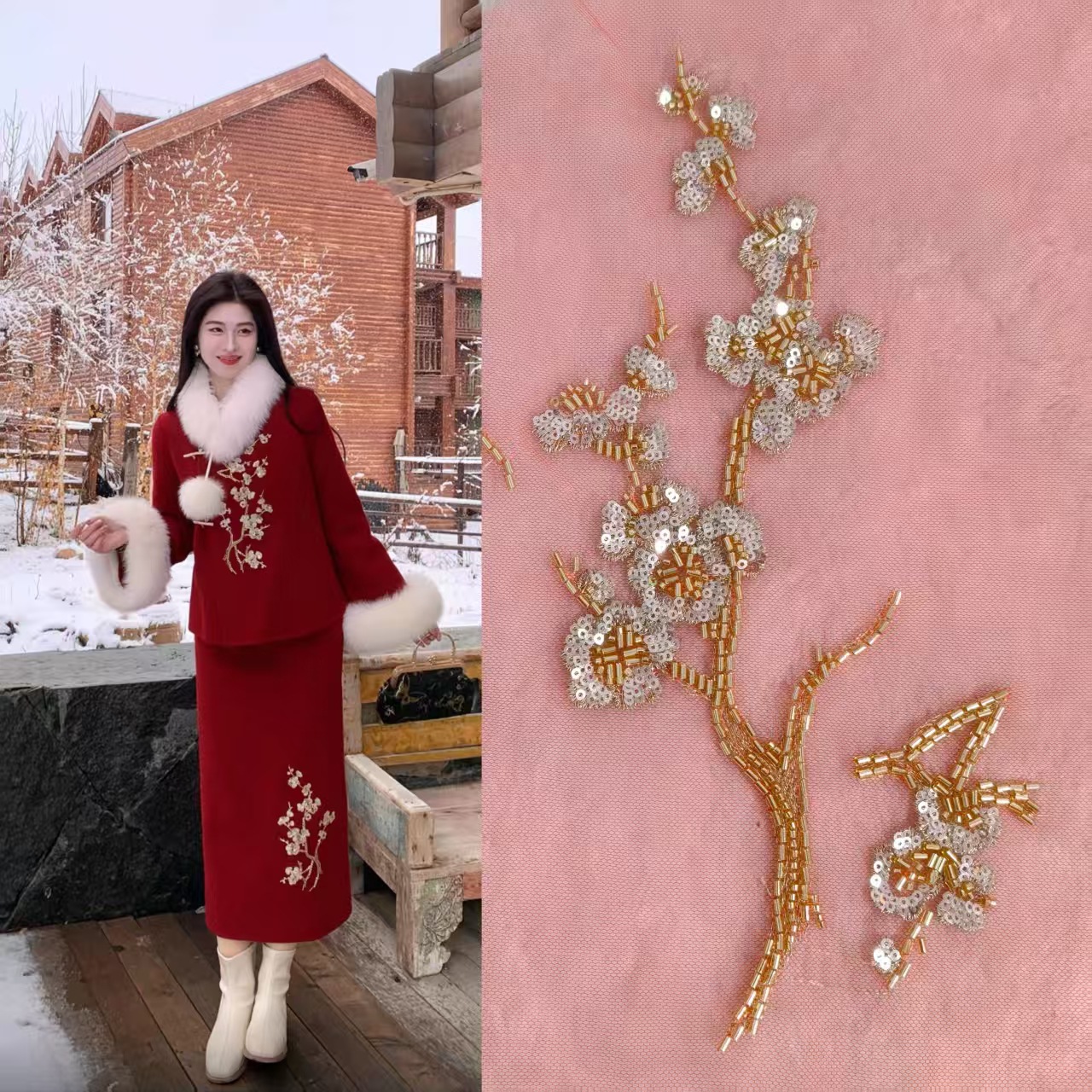珠绣梅花花贴 新娘敬酒服新中式过年服旗袍辅料布贴 DIY新品上市