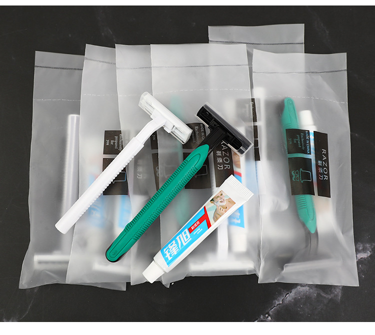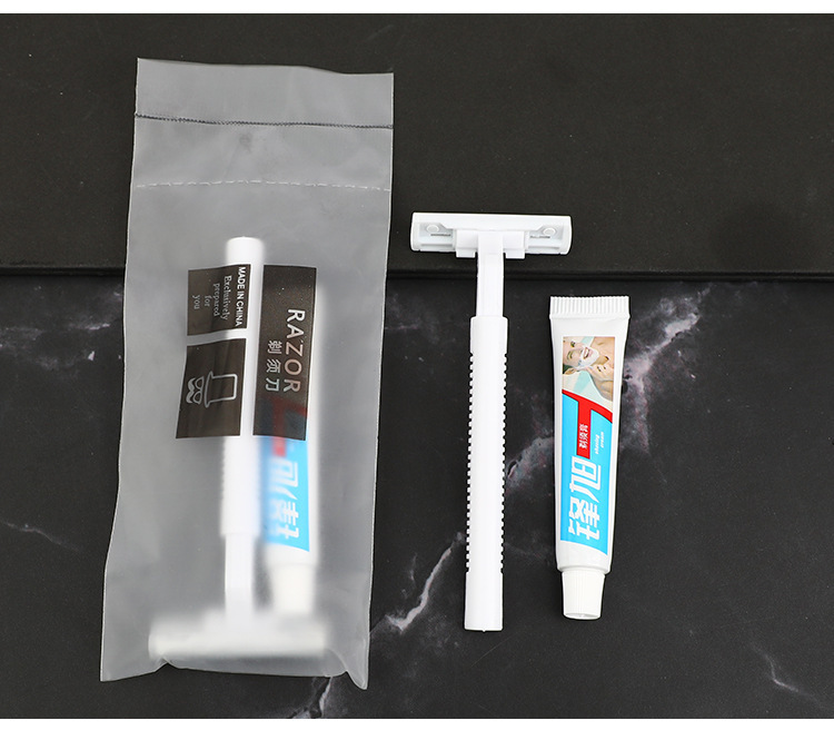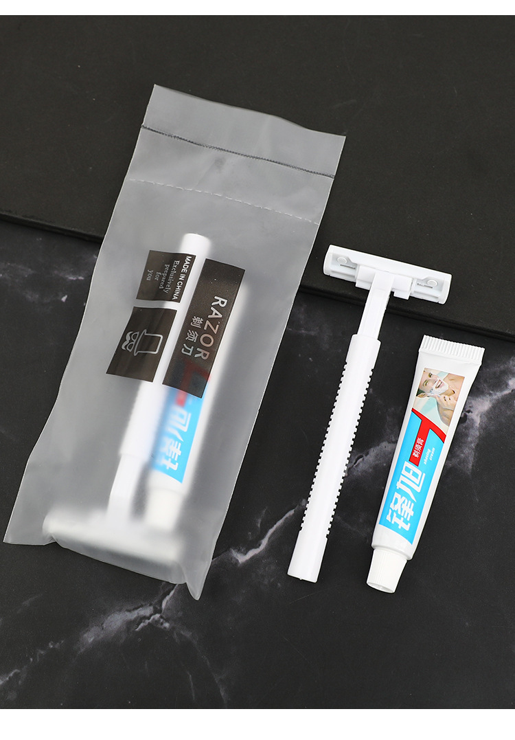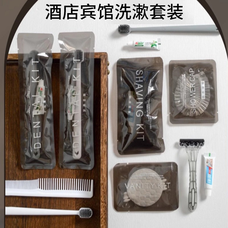 高級ホテル民宿用品使い捨て洗面用品セットグレー透明袋歯ブラシ歯磨き粉セット