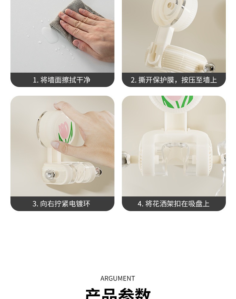 免打孔花洒吸盘支架多巴胺郁金香花洒固定器底座可移动淋浴喷头架