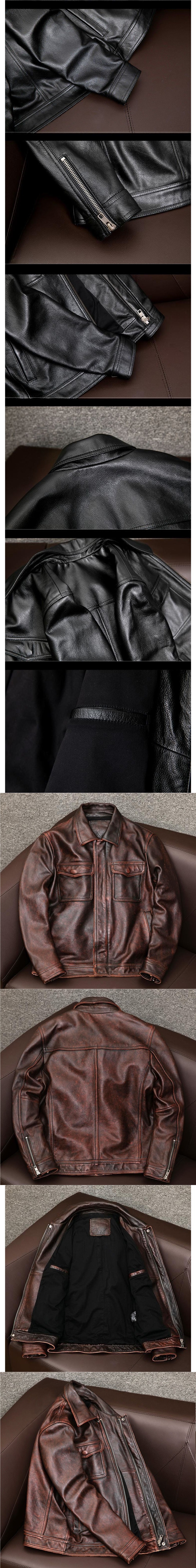 颜色 复古咔叽皮衣-黑色 薄款,复古咔叽皮衣-棕色 薄款,复古咔叽皮衣-黑色 加厚款,复古咔叽皮衣-棕色 加厚款