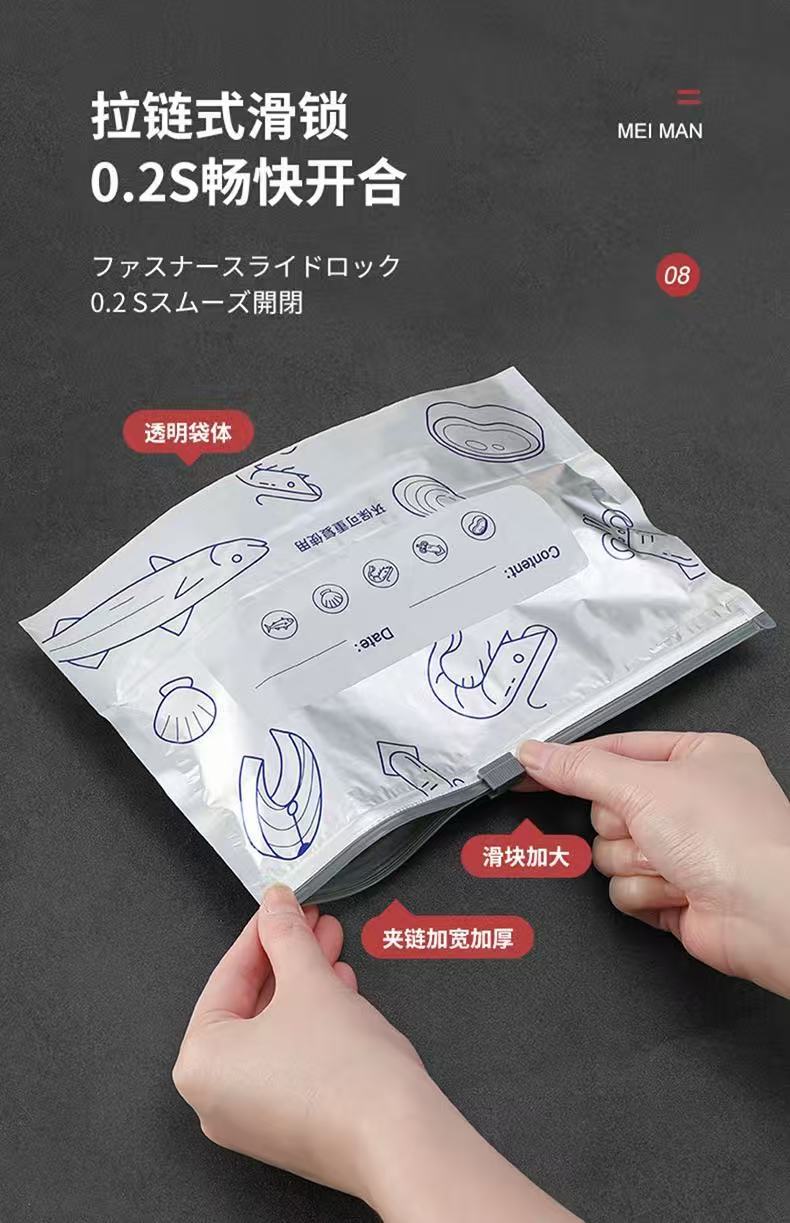 アルミホイルスライドロック鮮度保持袋 ジッパー密封袋 アルミホイル食品密袋 冷蔵庫冷凍冷蔵包装袋