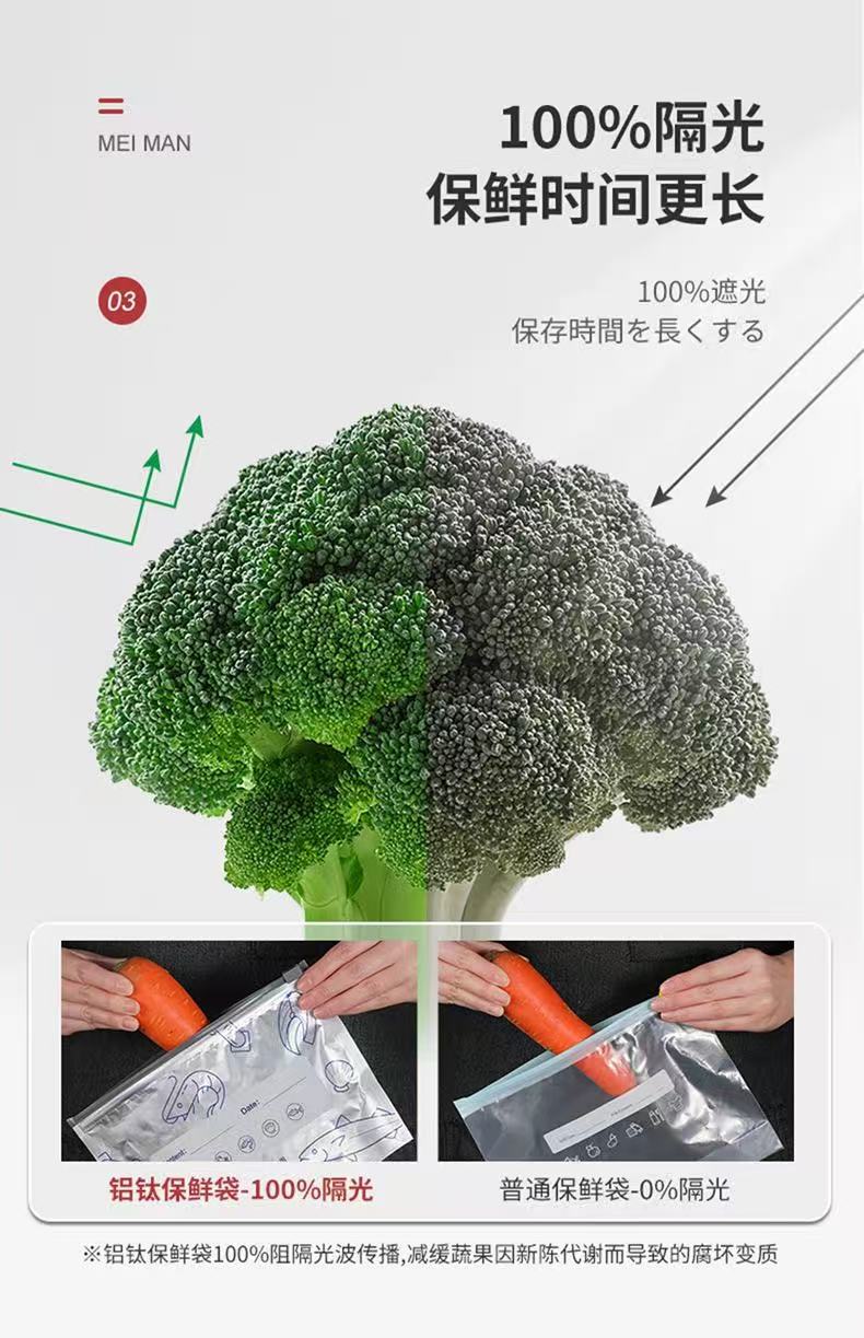 アルミ箔鮮度保持袋、食品冷蔵密封袋、野菜包装保存袋、冷蔵庫冷凍庫用ジッパー付きセルフシール袋