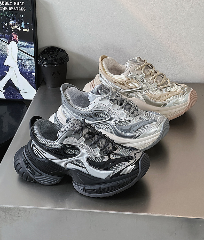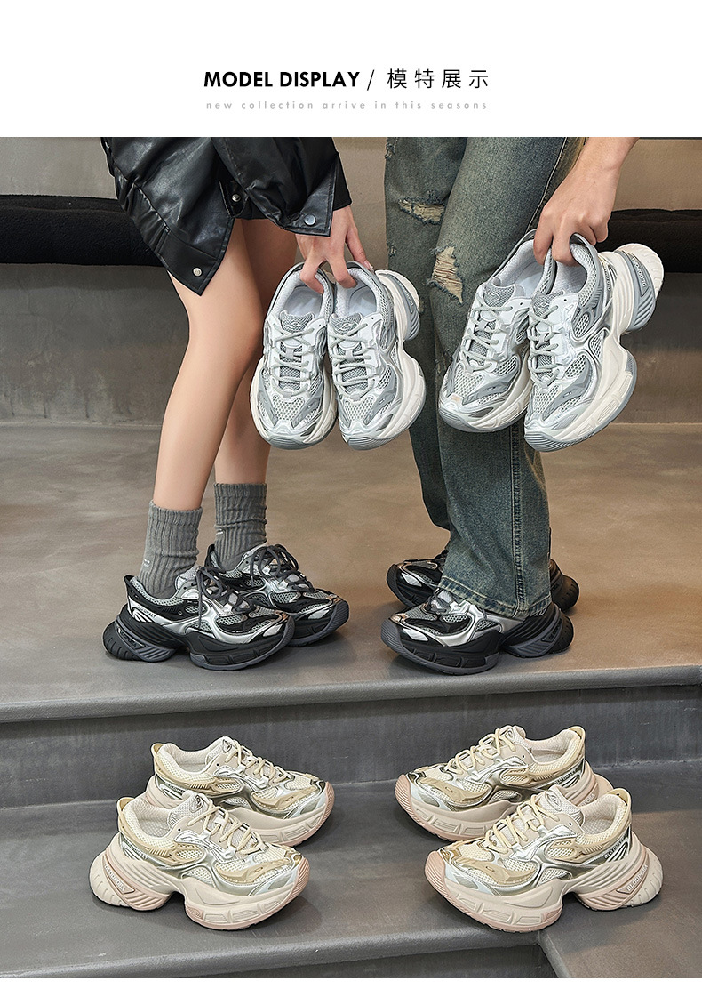 老爹鞋男2025秋季新款增高厚底透气网面时尚潮流情侣机甲休闲鞋女