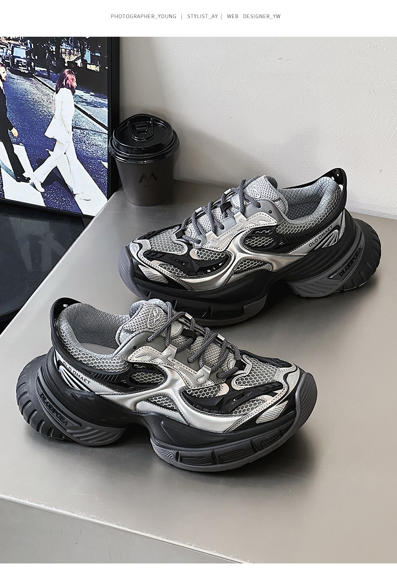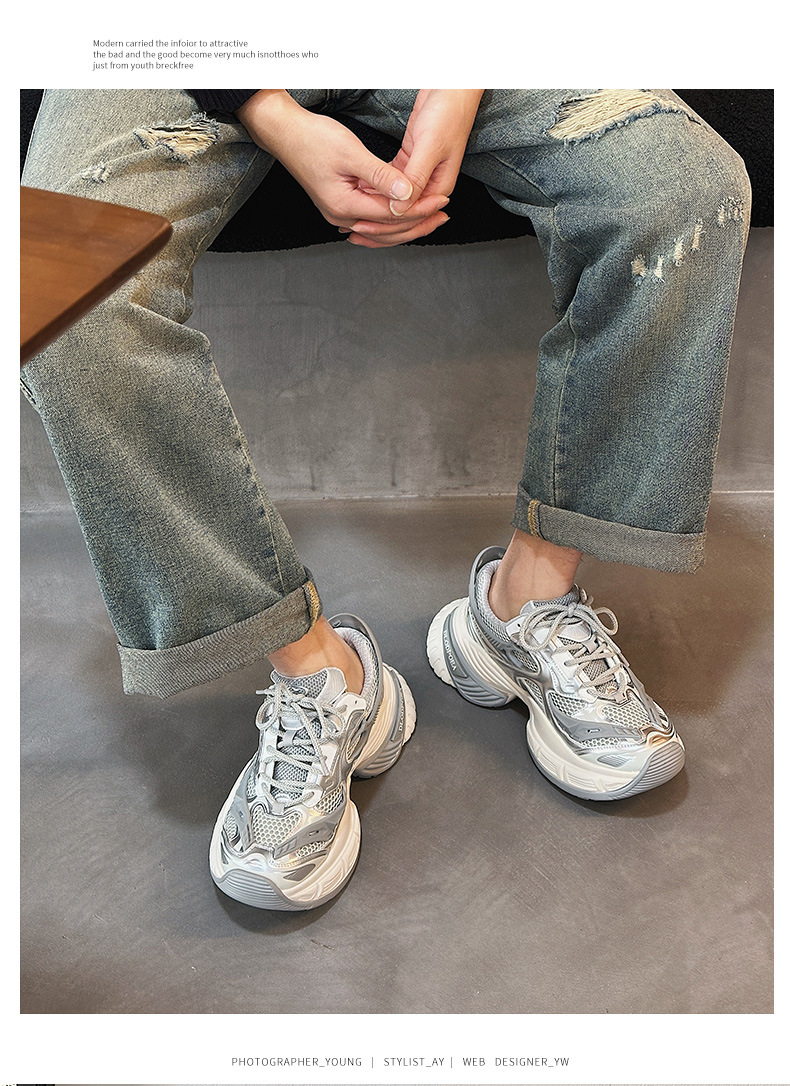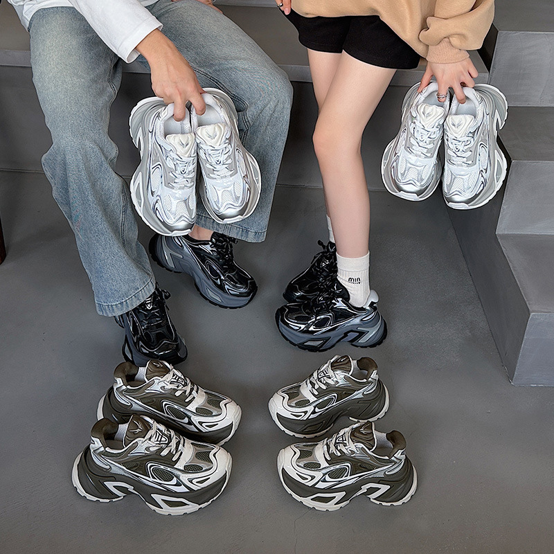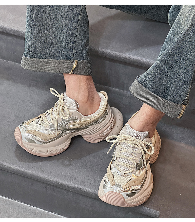 男女兼用トレンドシューズ2025新作ファッション万能厚底スポーツカジュアルシューズ通気性アップ身長アップカップル向けダッドシューズ
