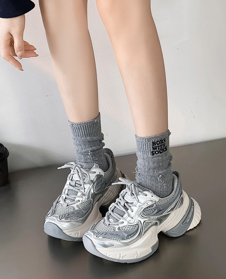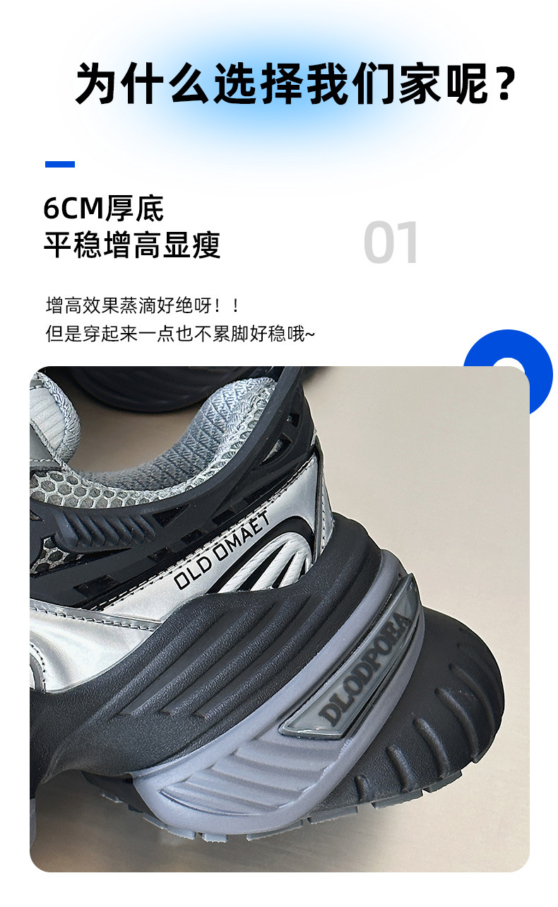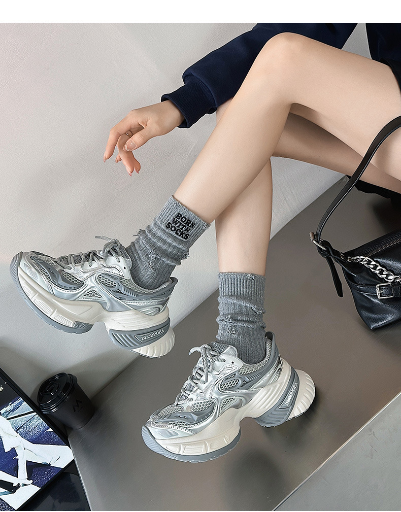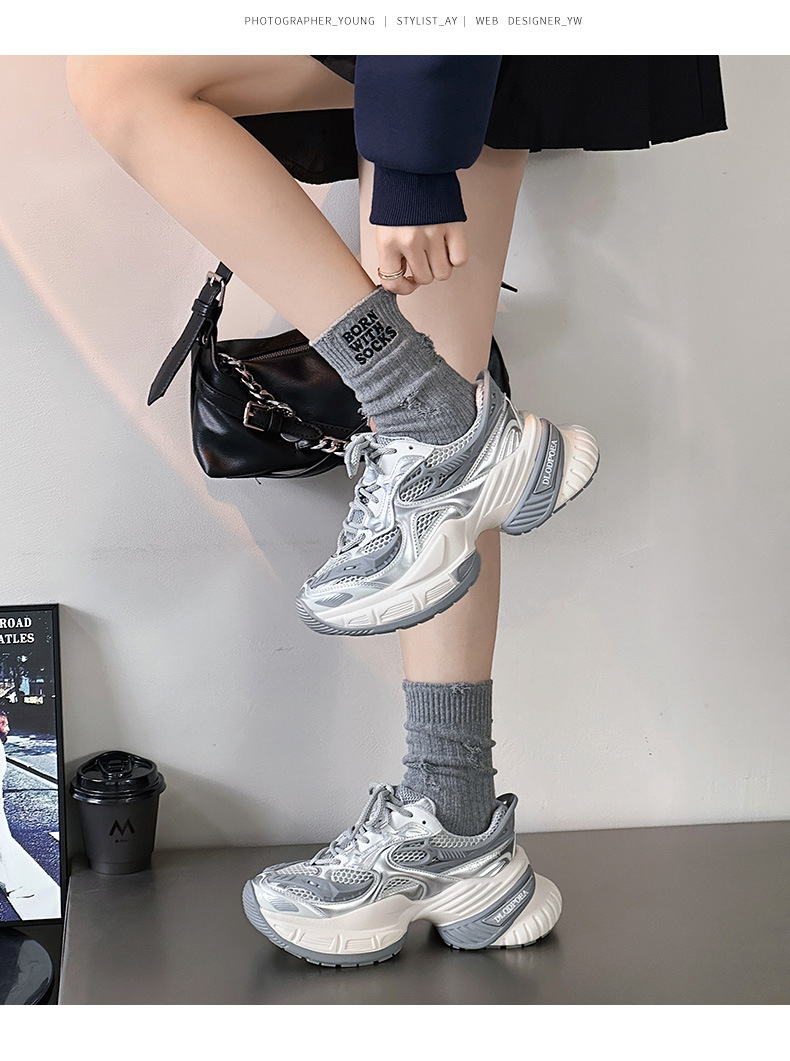 男女兼用トレンドシューズ2025新作ファッション万能厚底スポーツカジュアルシューズ通気性アップ身長アップカップル向けダッドシューズ