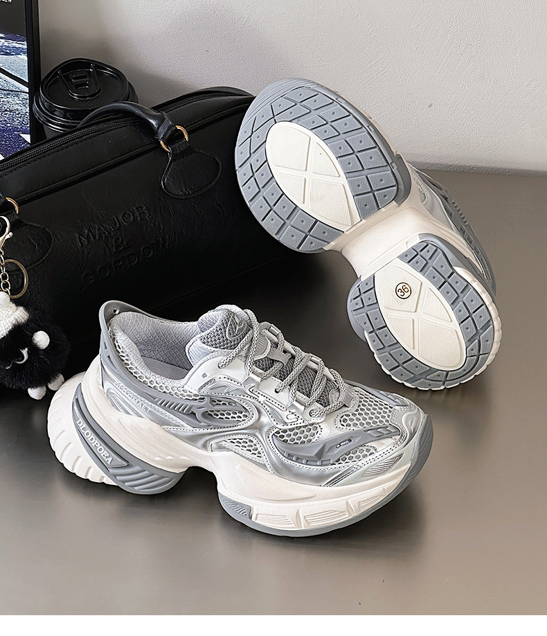 女性用ダッドシューズ 2025 夏の新通気性メッシュ薄型スポーツシューズカップルスタイル厚底カジュアル白靴男性用