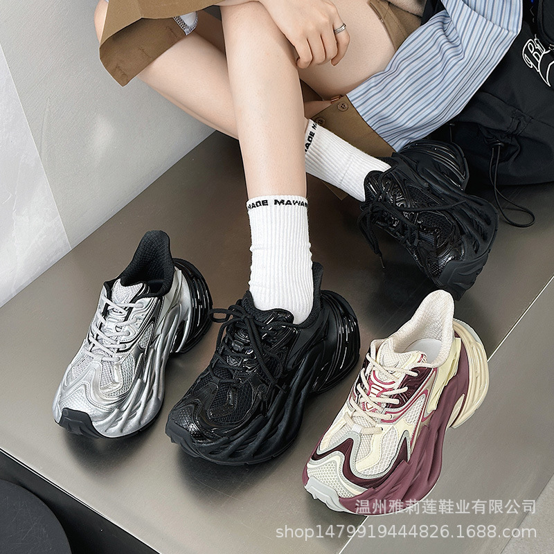 ウェーブ厚底お父さん靴女性 2022 春夏厚底カップルスポーツシューズイントレンディなブランドメッシュ通気性カジュアルシューズ