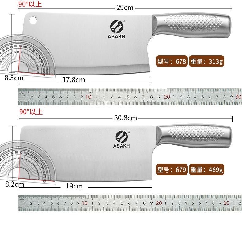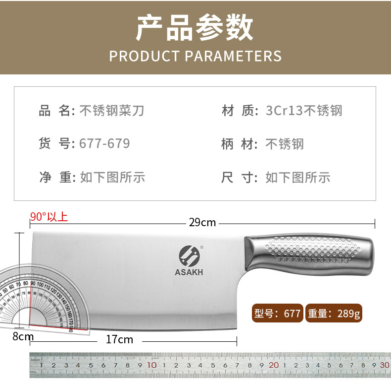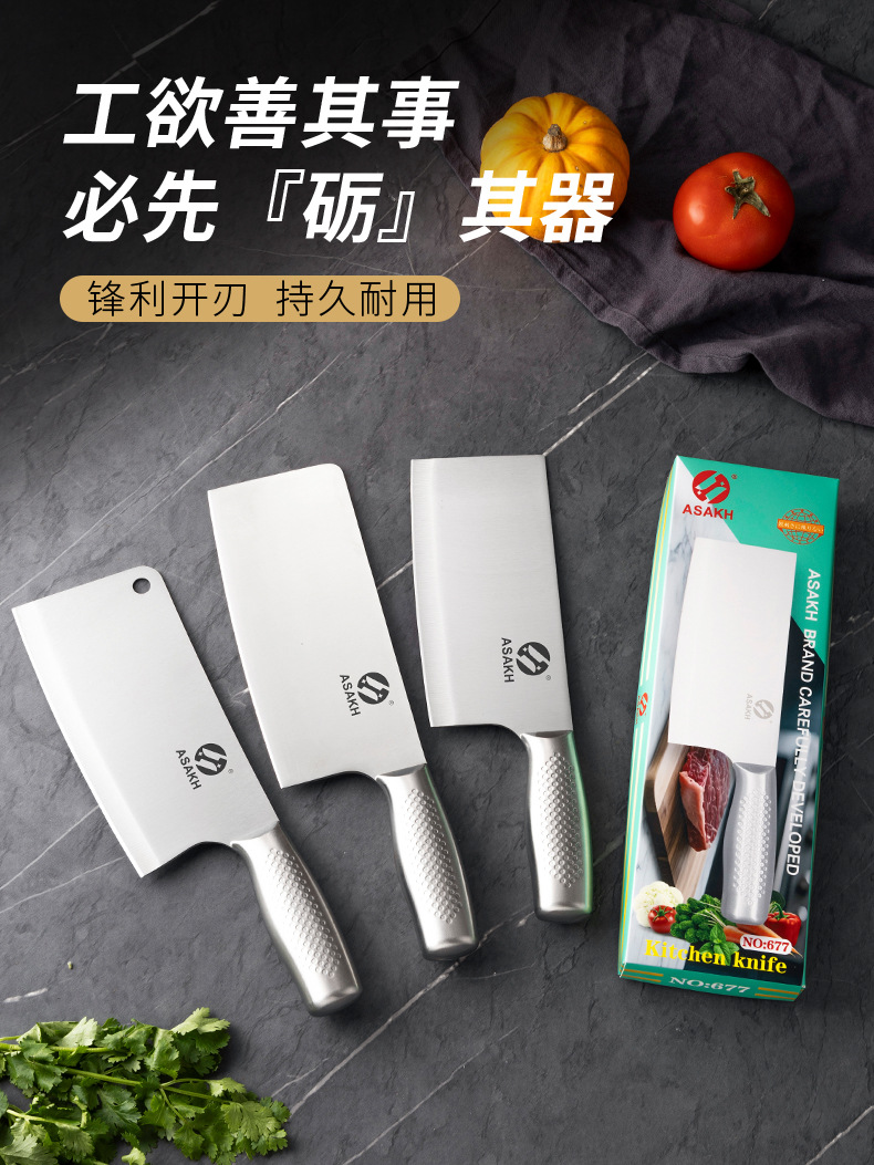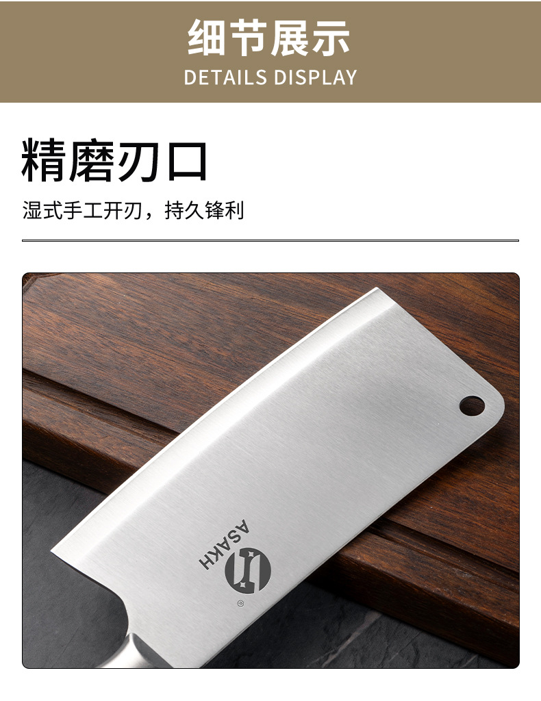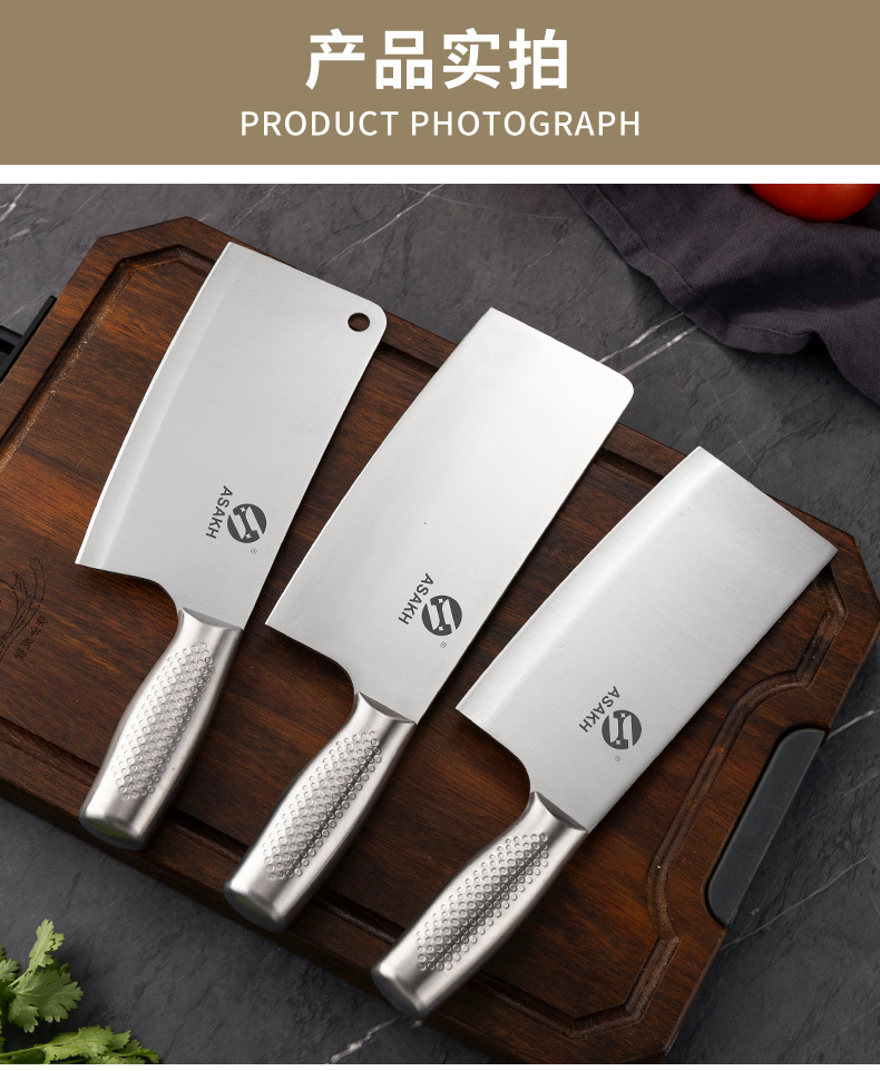 家用不锈钢切菜刀空心柄切片切肉刀厨房斩切两用锋利厨师刀具