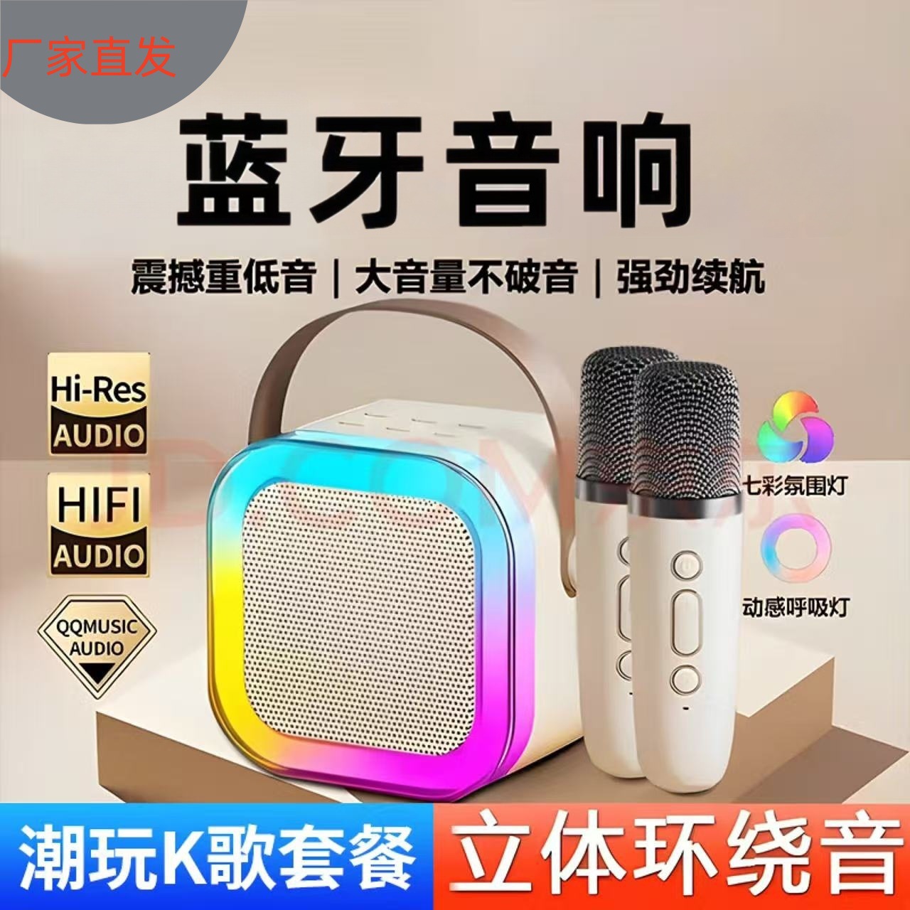跨境爆款K12蓝牙音箱话筒一体户外直播家用K歌带麦克风音响便携款