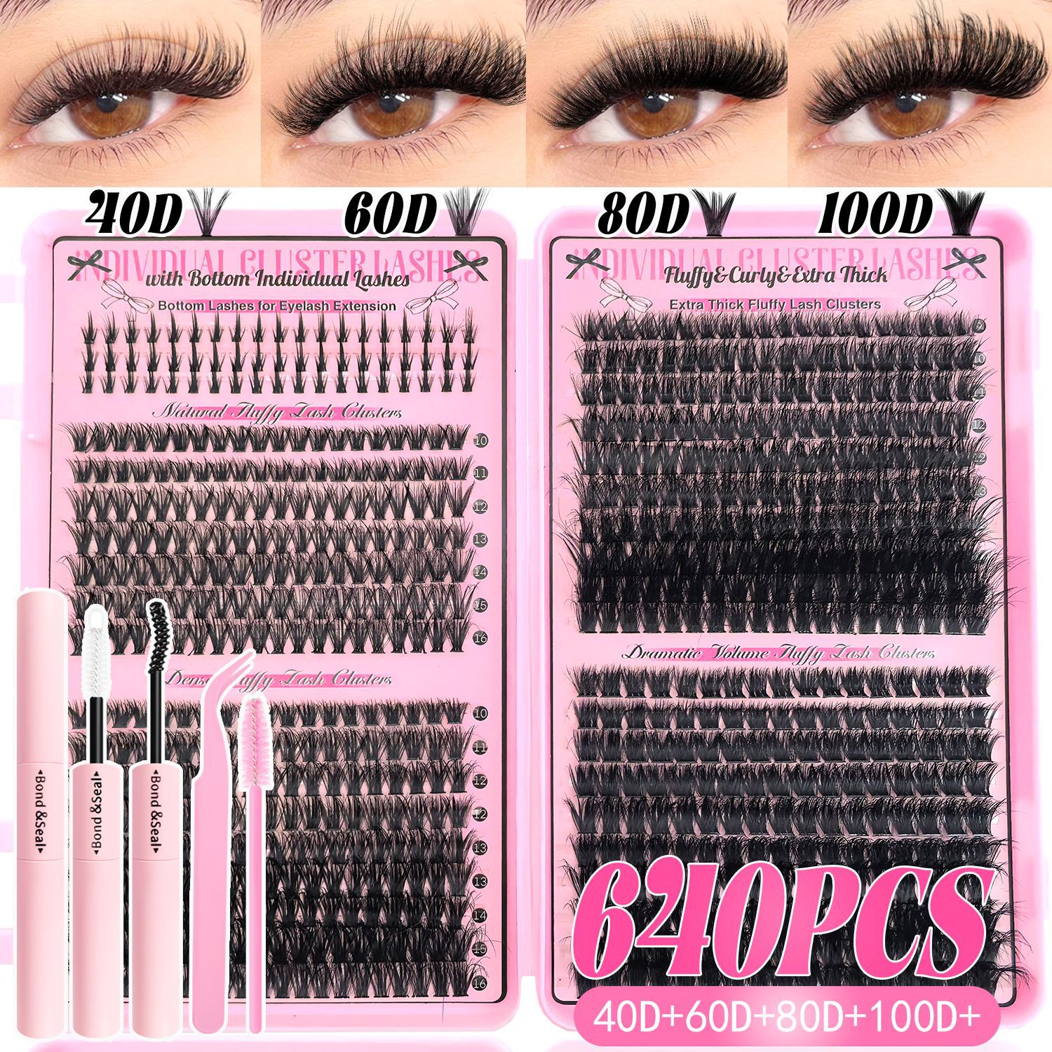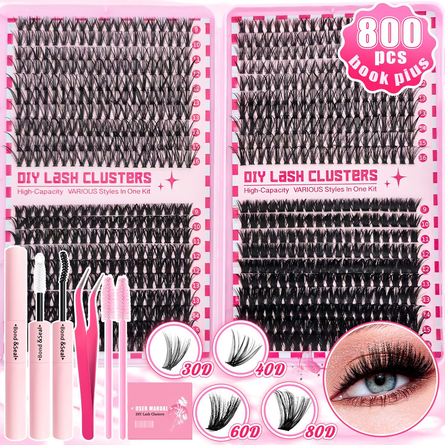 クロスボーダー新品800クラスターDIY輪毛まつげ本30D40D50D60D濃密D曲区切りつけまつげセット