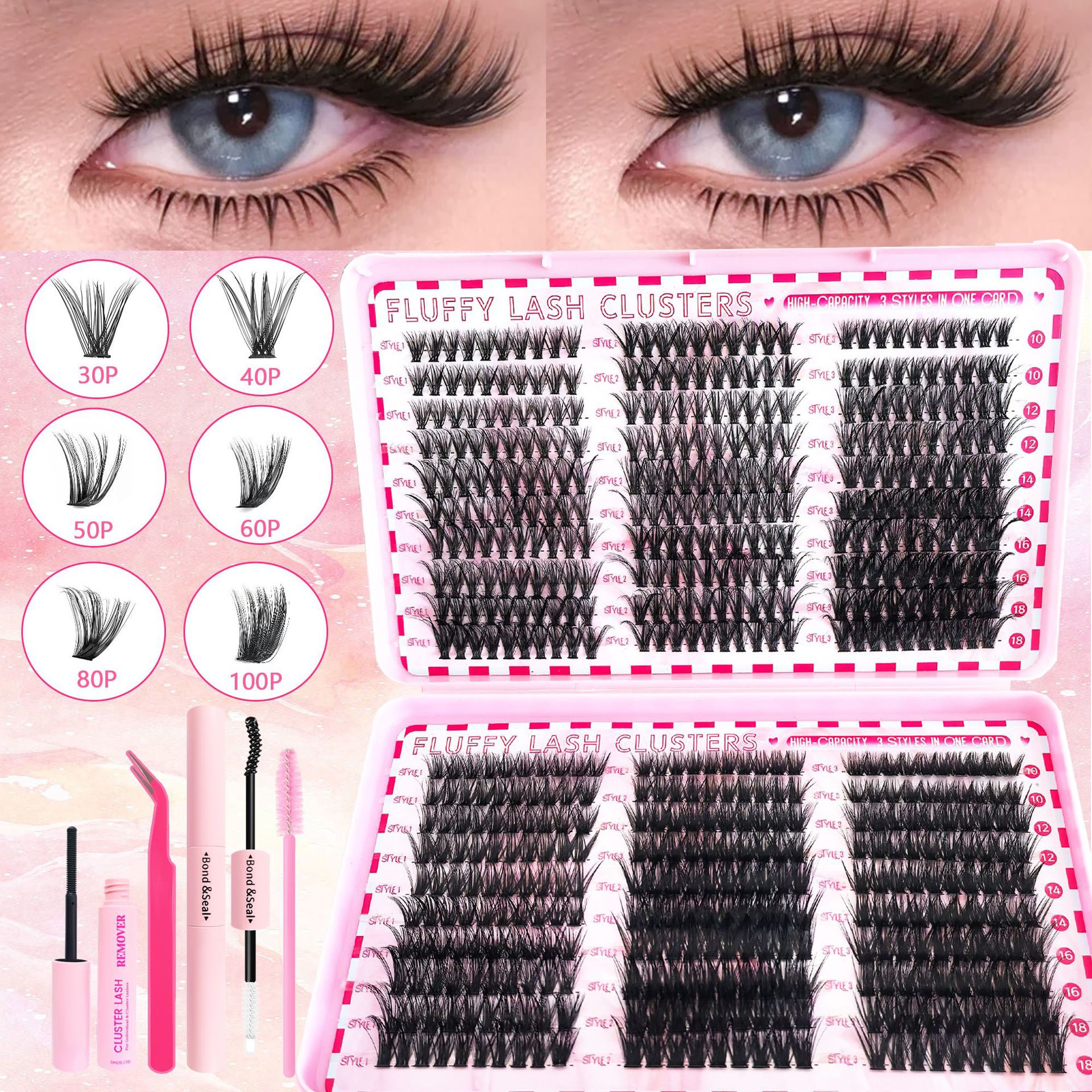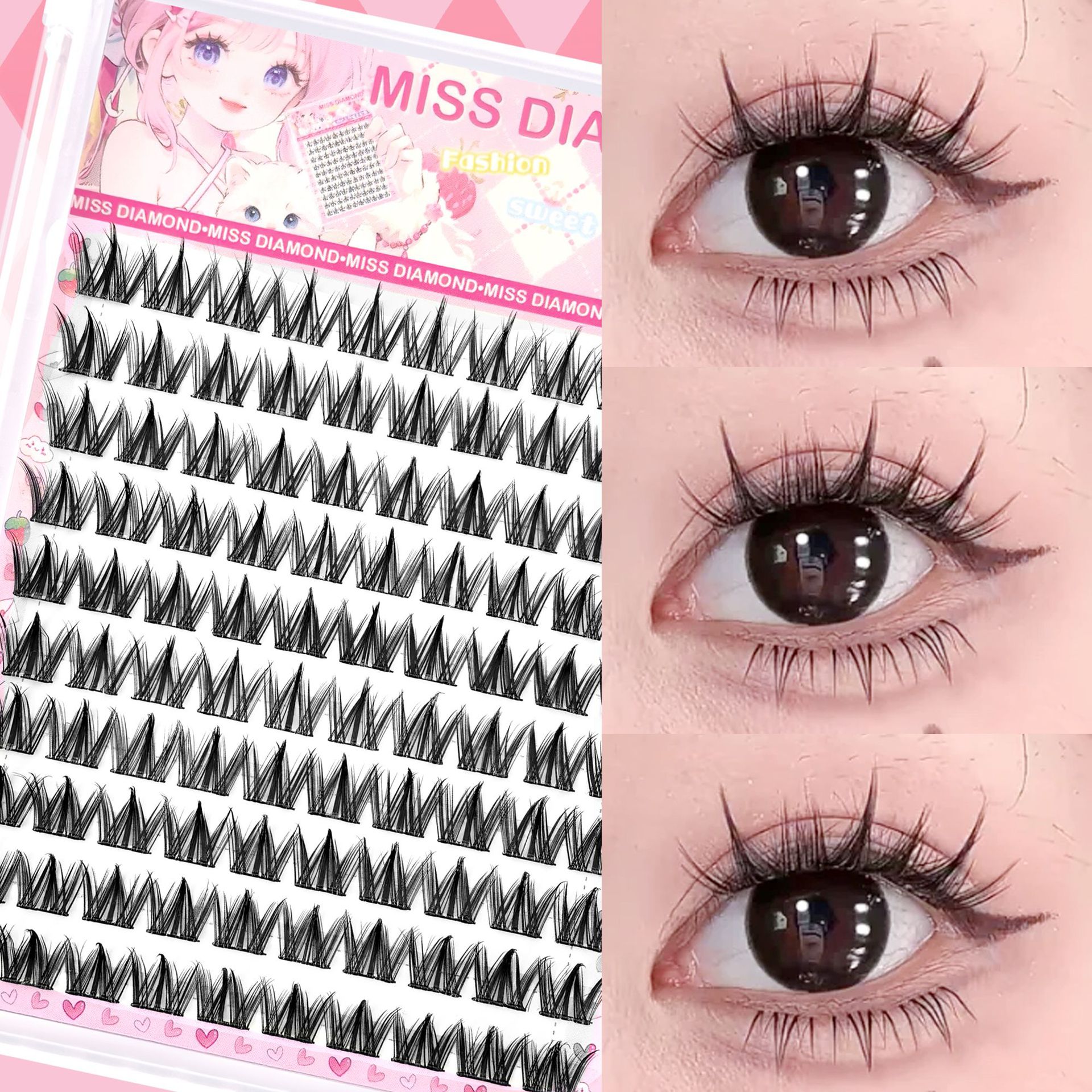 100クラスターの大容量接着剤不使用の小型犬用つけまつげ、怠惰な濃い自然な初心者まつげコミックセグメント