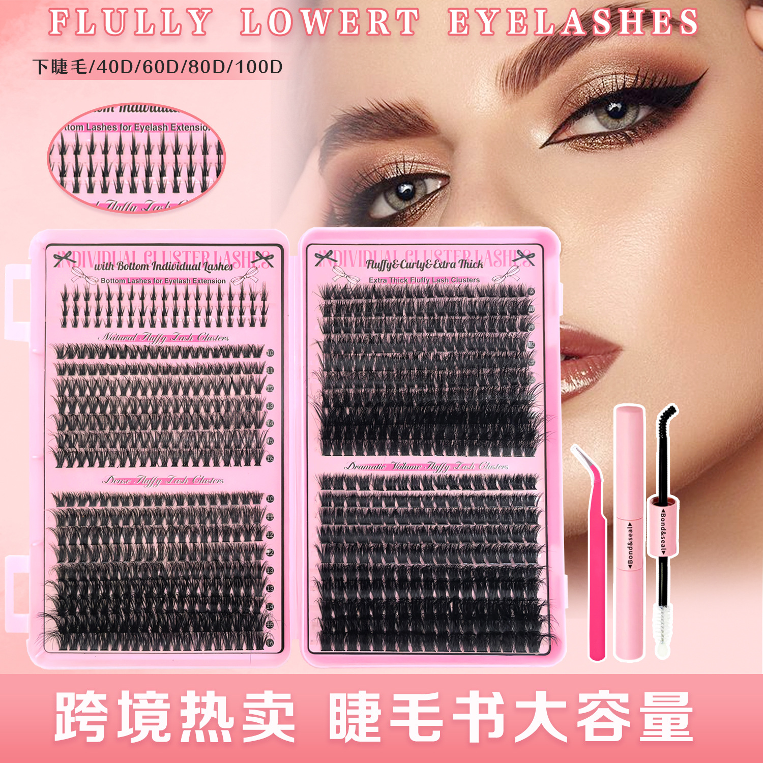 跨境欧美睫毛书混合款大容量下睫毛40/60/80/100D炸毛分段假睫毛