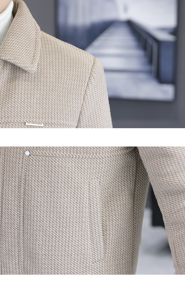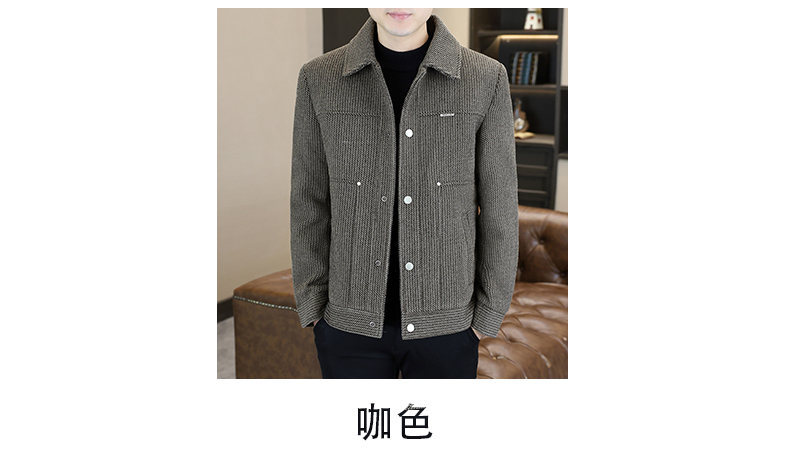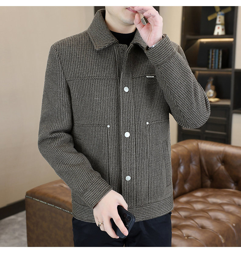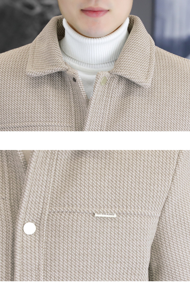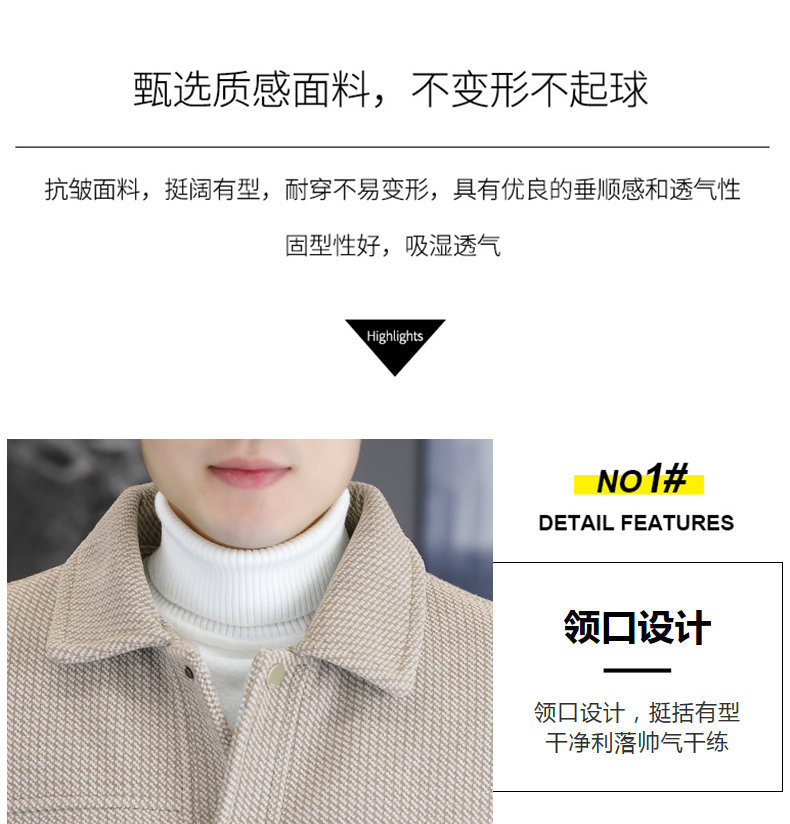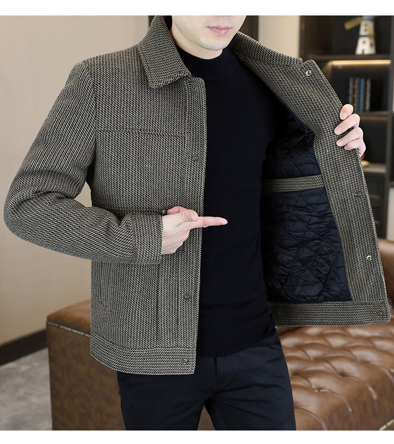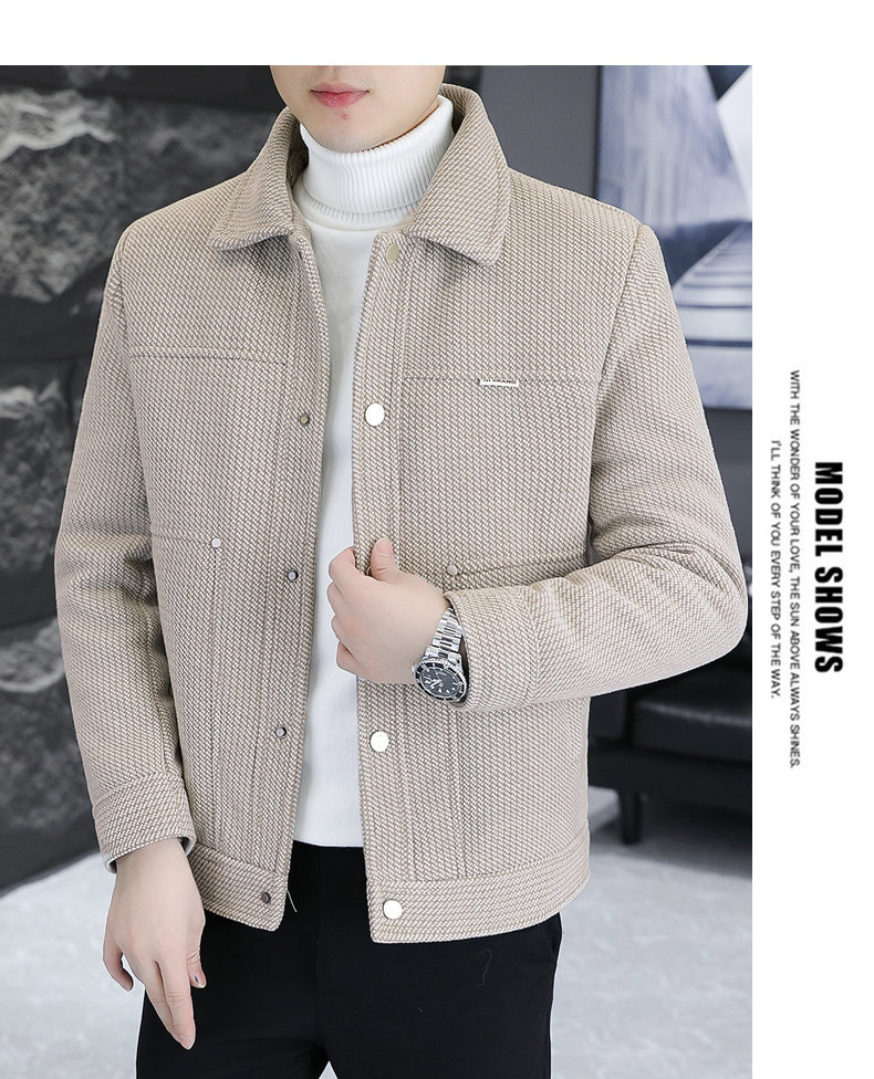 秋冬用裏起毛厚手羊毛ウールコート、新作メンズ若者向けラペル付きウールコート、保温性のあるウールジャケット